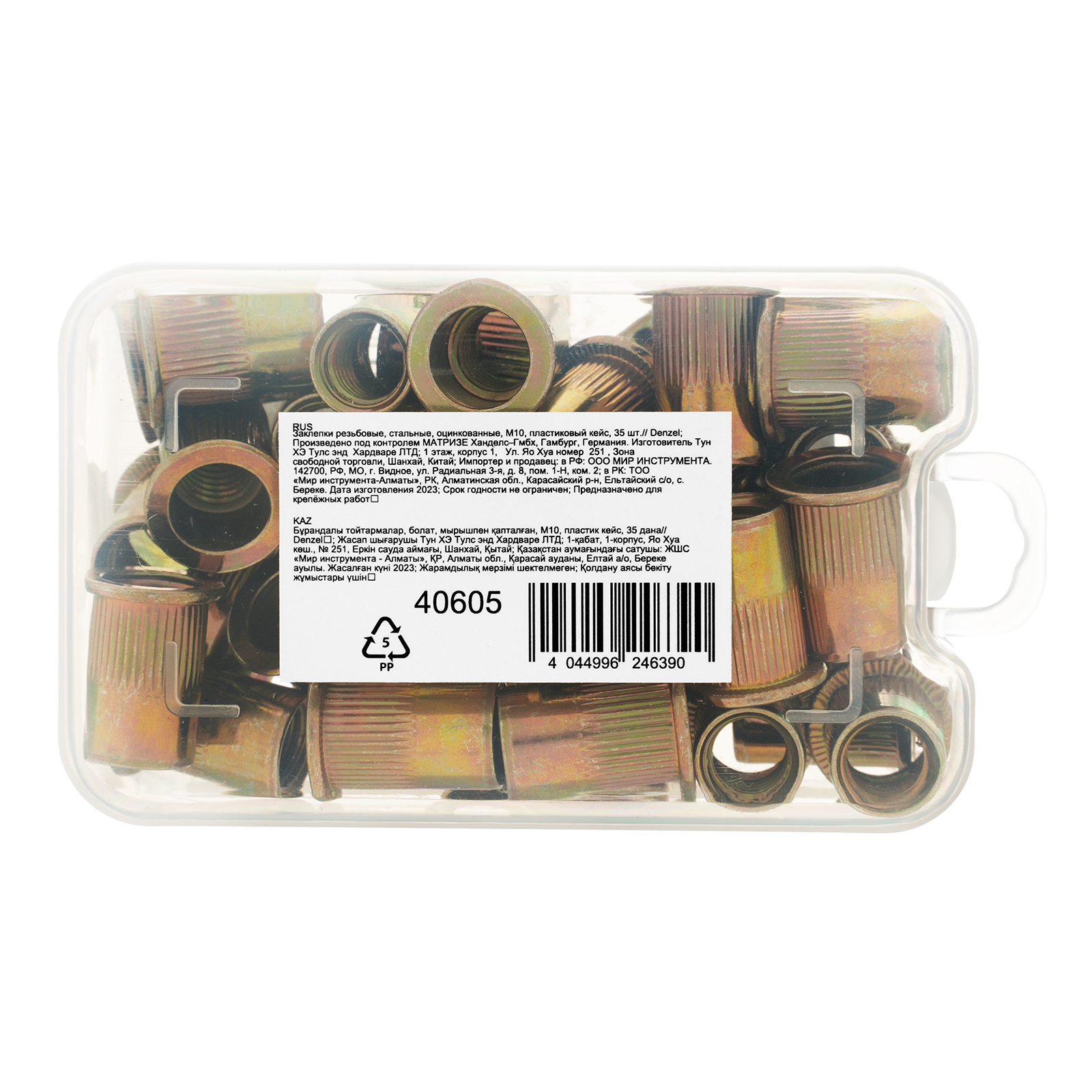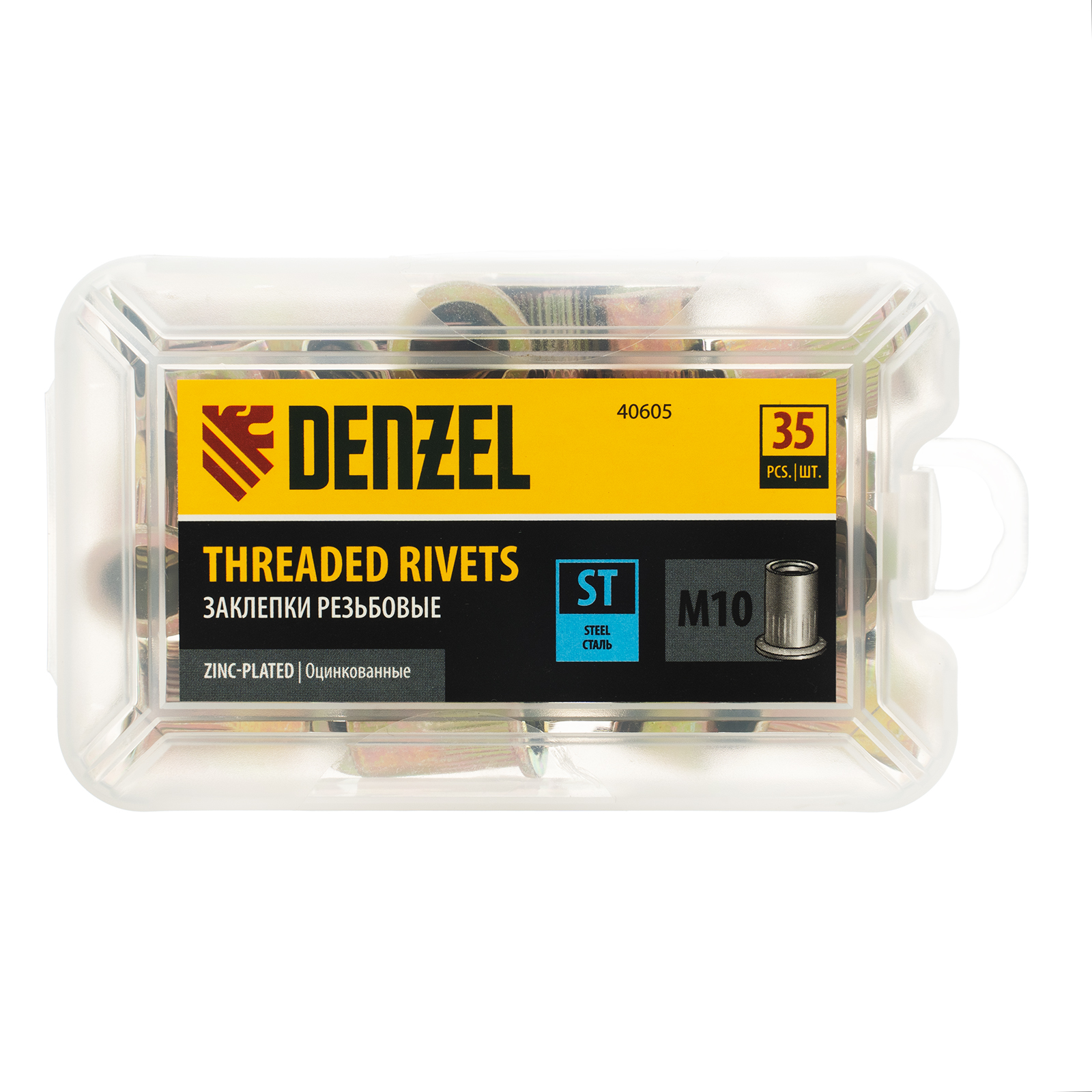 Заклепки резьбовые, стальные, оцинкованные, м10, пластиковый кейс, 35 шт. Denzel