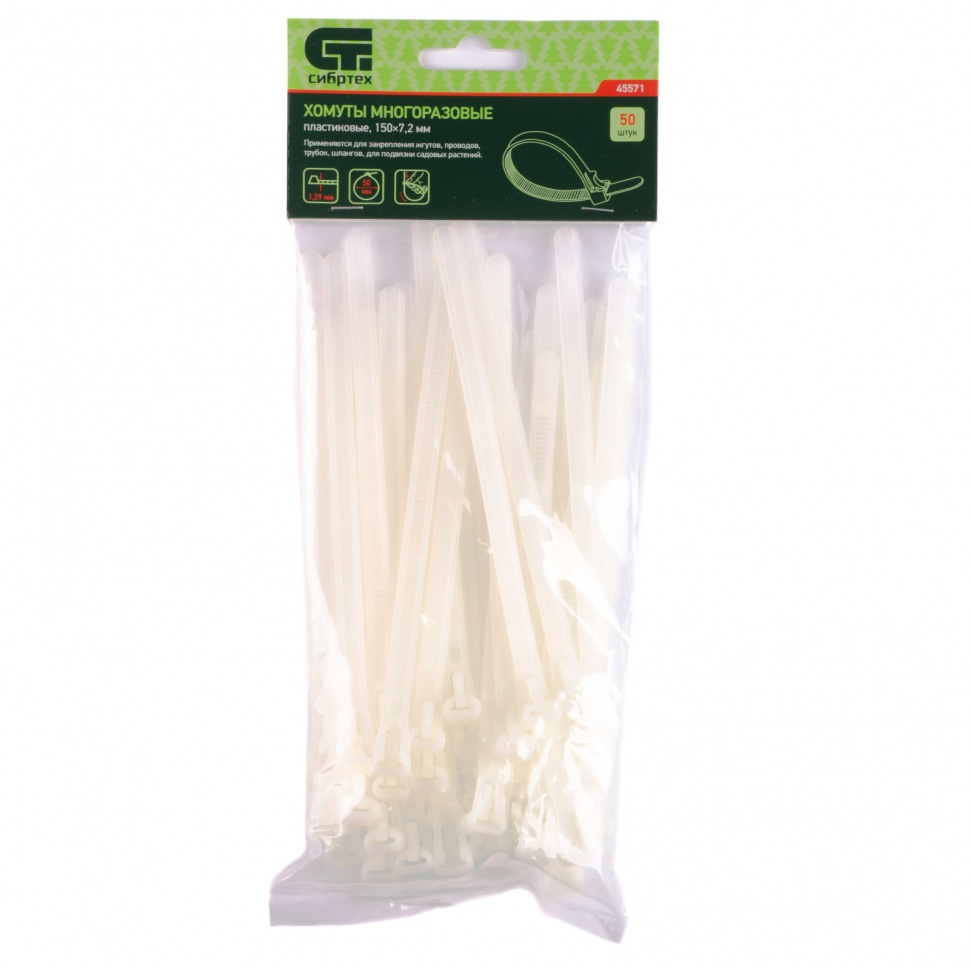 Хомуты многоразовые 150 X 7.2 мм, пластиковые 50 шт сибртех