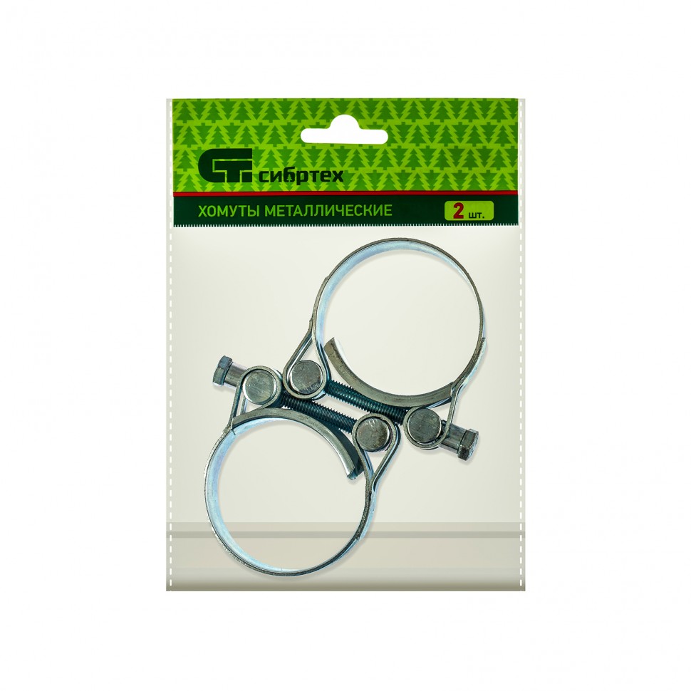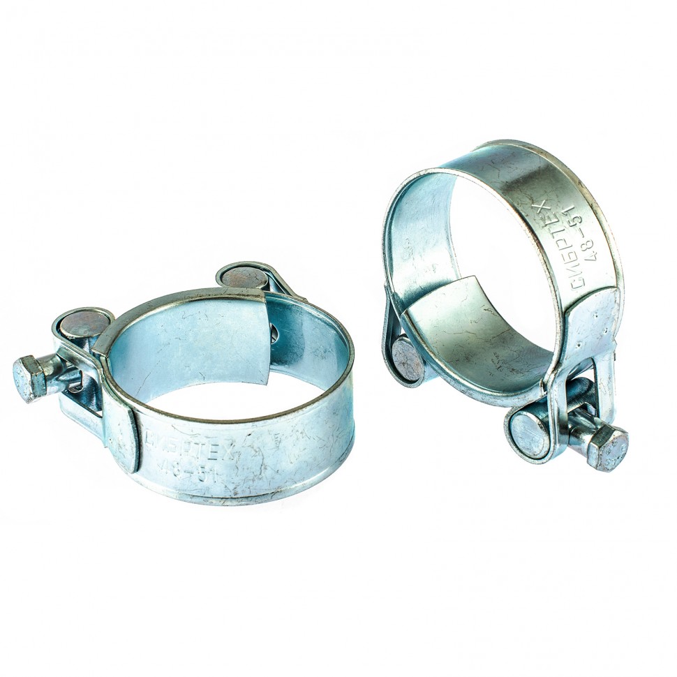 Хомуты металлические, силовые 48-51 мм, ширина 22 мм, шарнирный, W1, 2 шт сибртех
