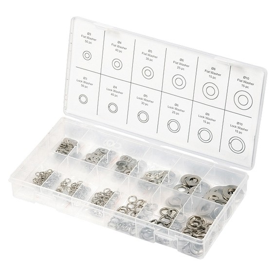 Набор шайб и гроверов, D шайб: 3, 4, 5, 6, 8, 10 мм D гроверов: 3, 4, 5, 6, 8, 10 мм, 350 предметов сибртех