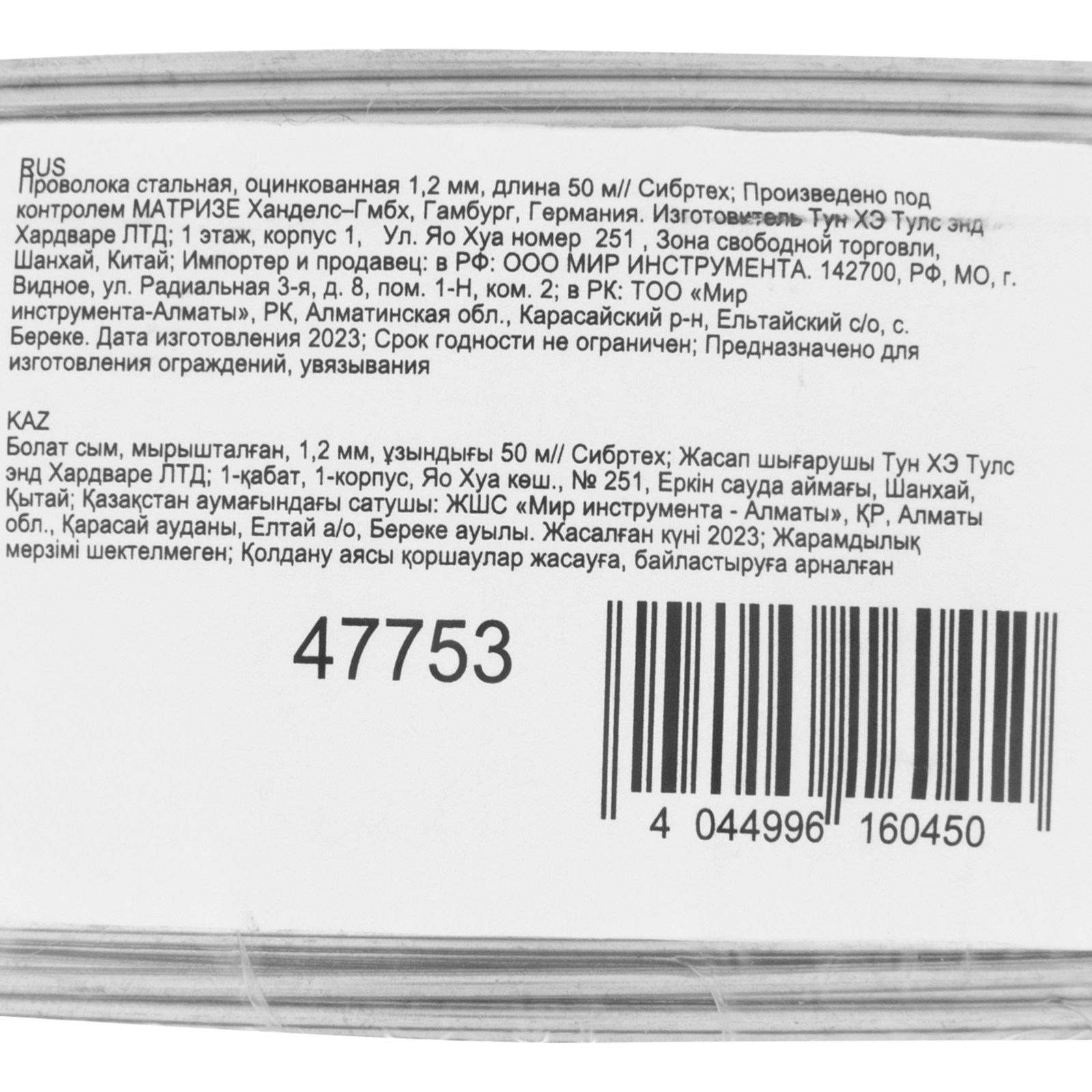 Проволока стальная, оцинкованная 1.2 мм, длина 50 м сибртех Проволока стальная, оцинкованная 1.2 мм, длина 50 м сибртех Проволока стальная, оцинкованная 1.2 мм, длина 50 м сибртех Проволока стальная, оцинкованная 1.2 мм, длина 50 м сибртех