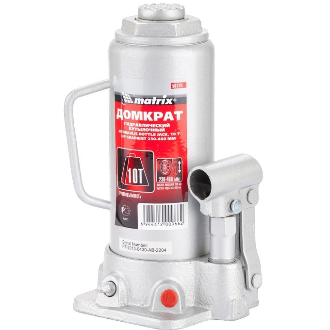 Домкрат гидравлический бутылочный, 10 т, высота подъема 230-460 мм Matrix