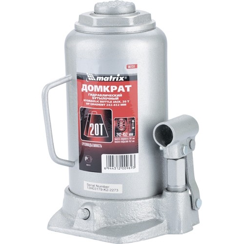 Домкрат гидравлический бутылочный, 20 т, высота подъема 242-452 мм matrix .