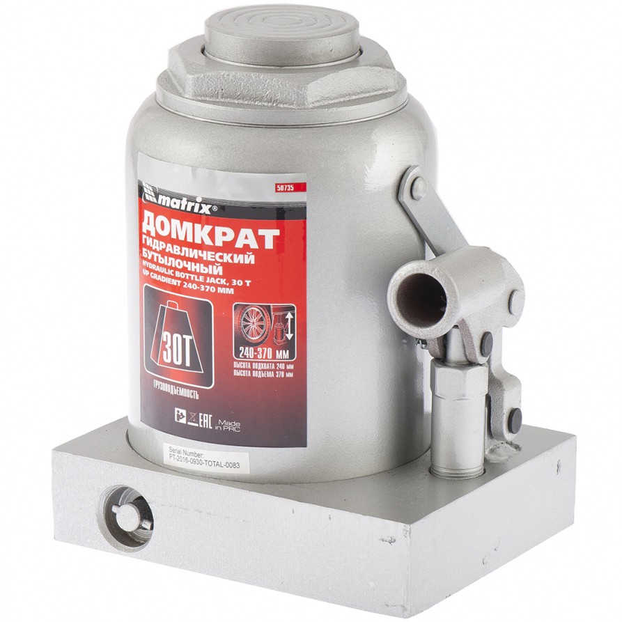 Домкрат гидравлический бутылочный, 30 т, высота подъема 240-370 мм Matrix