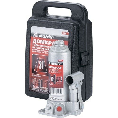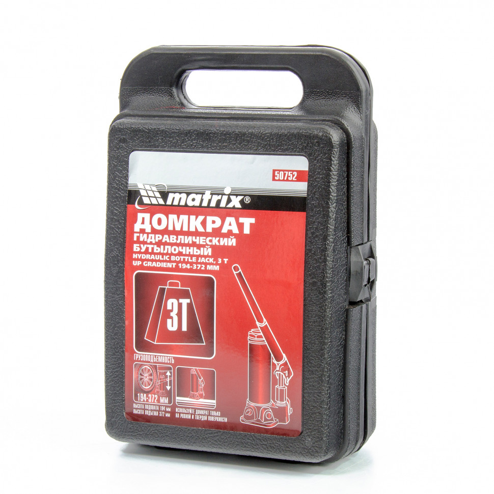 Домкрат гидравлический бутылочный, 3 т, высота подъема 194-372 мм, в пласт