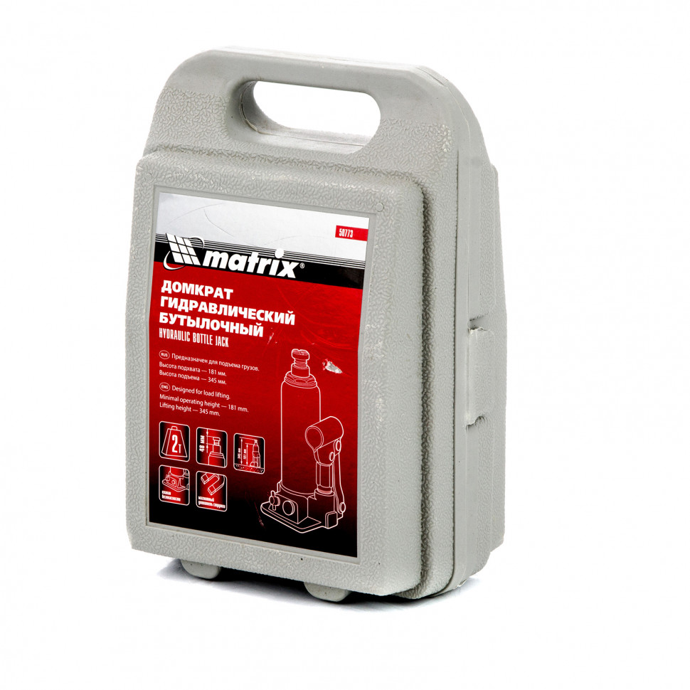 Домкрат гидравлический бутылочный, 2 т, H подъема 181-345 мм, в пластиково