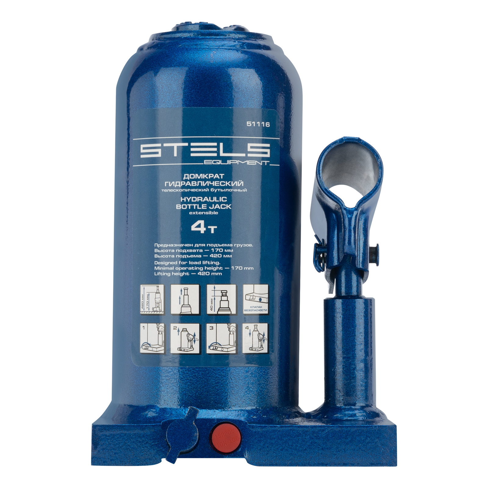 Домкрат гидравлический бутылочный телескопический, 4 т, H подъема 170-420 мм Stels