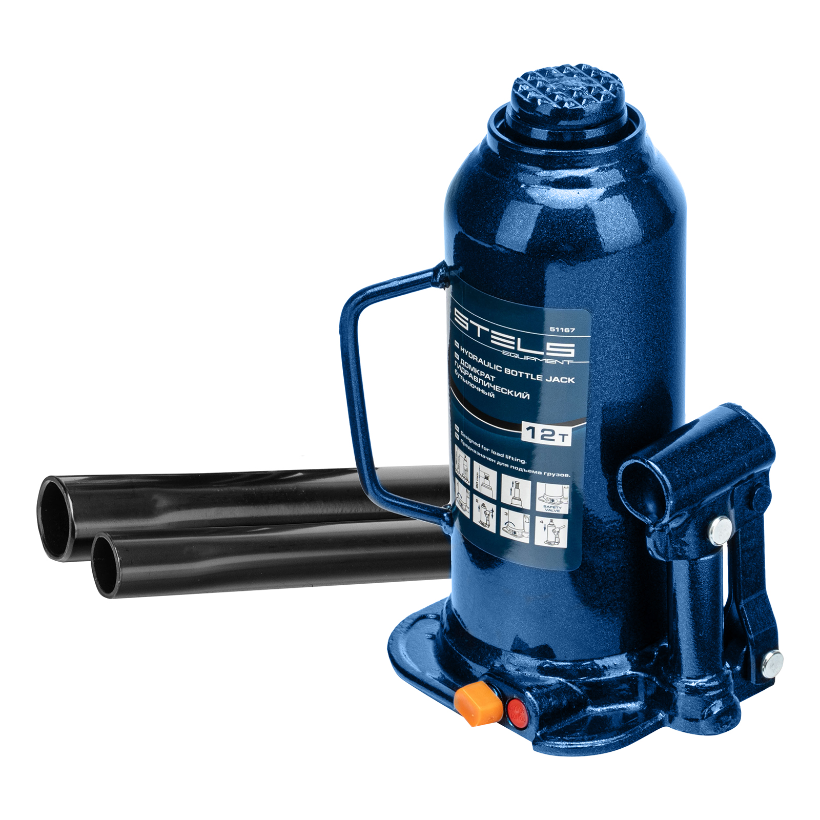 Домкрат гидравлический бутылочный, 12 т, H подъема 227-457 мм Stels