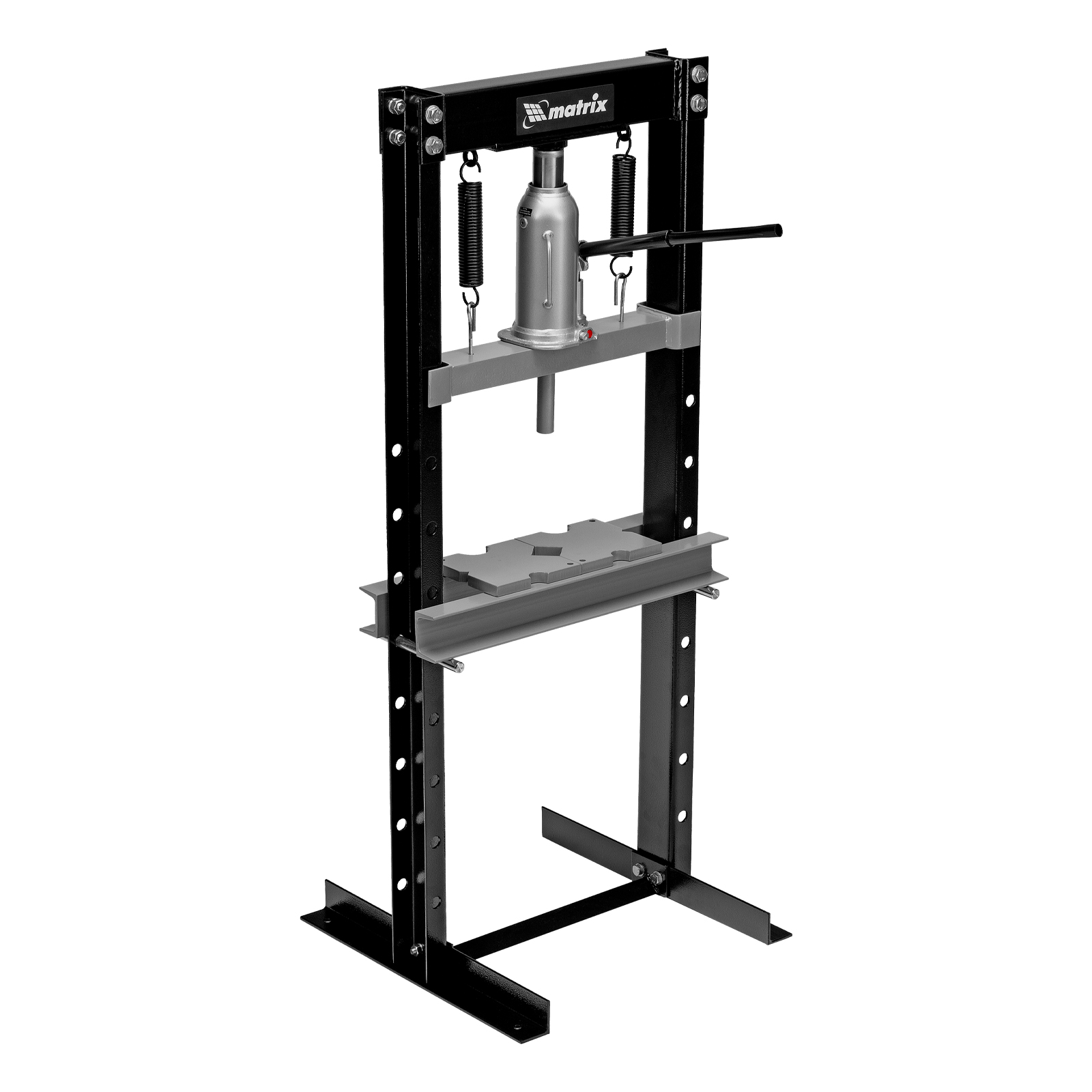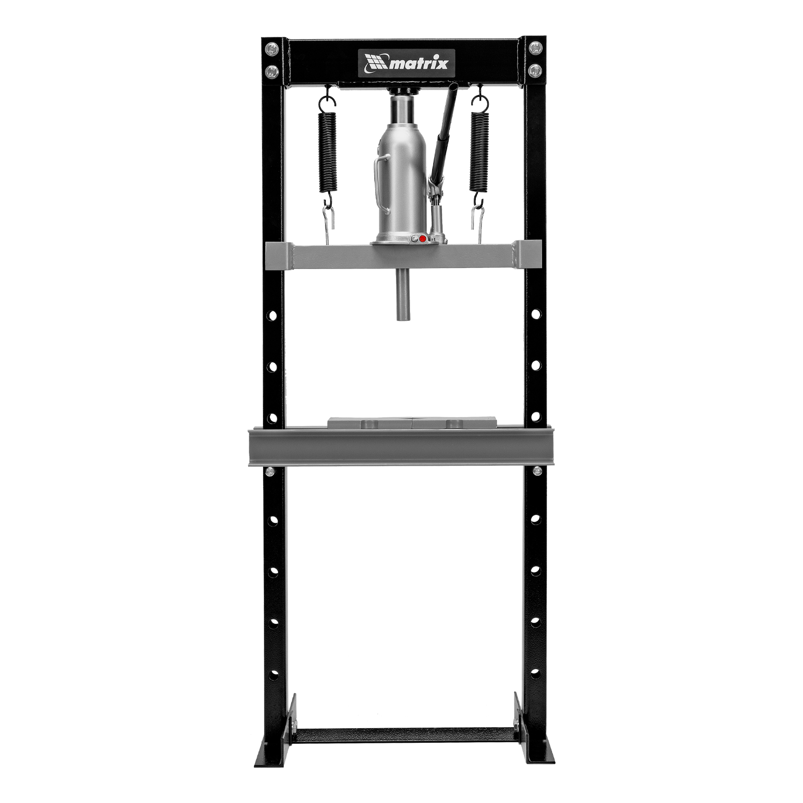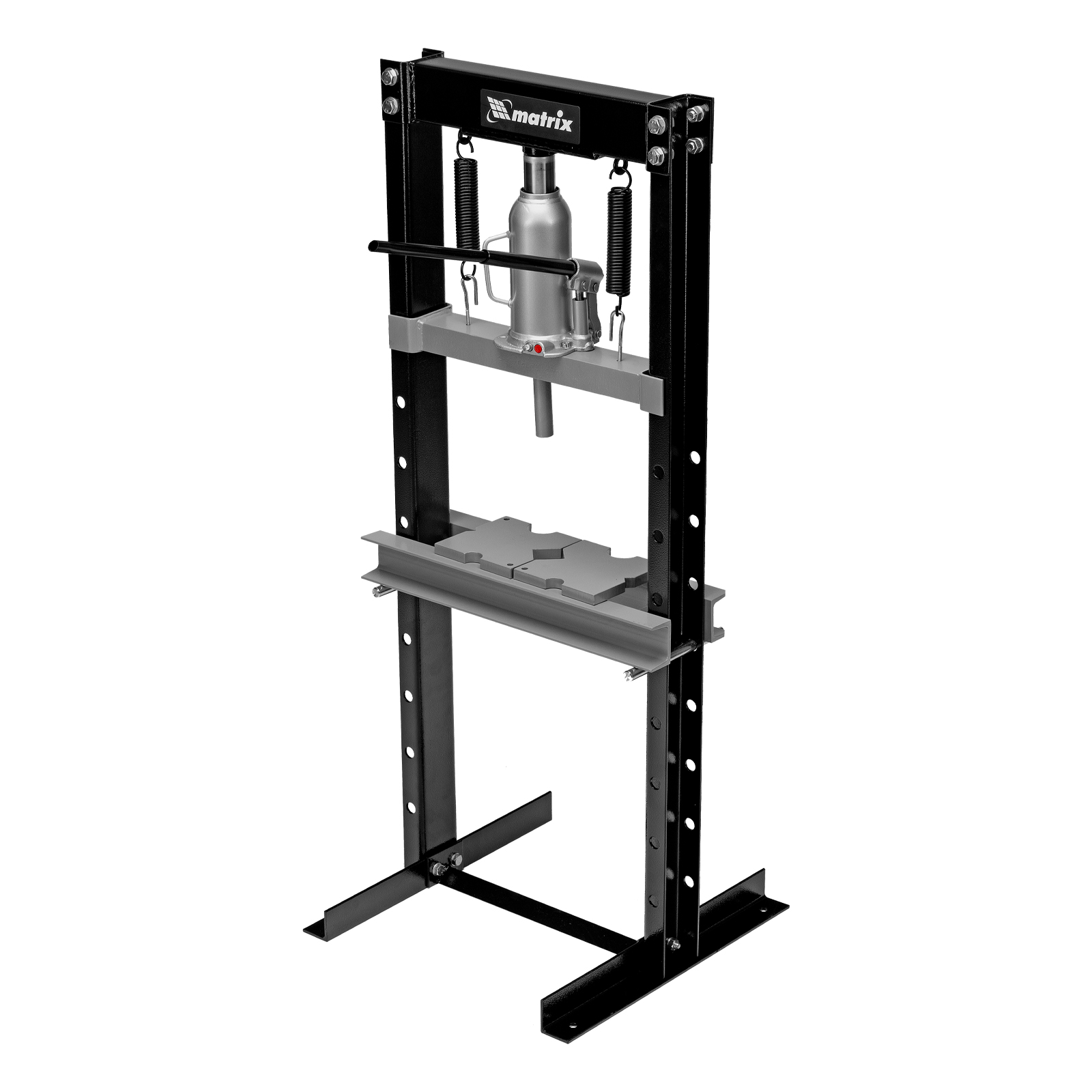 Пресс гидравлический, 12 т, 1360 х 500 х 510 мм. (комплект из 2 частей) matrix. Бренд: Matrix Габариты: 1350x500x500 мм Габариты в упаковке: 680 х 216 х 273 мм Гарантия: 1 год Особенности: привод ручной гидравлический Страна производства: Китай Подъем станины максимальный, мм: 740 Подъем станины минимальный, мм: 110 Тип упаковки: картонная коробка Длина в упаковке, мм: 680 Ширина в упаковке, мм: 216 Высота в упаковке, мм: 273 Вес (брутто), кг: 50 Руководство по эксплуатации: 1 шт Гидравлический пресс Matrix 523105 размером 1360 х 500 х 510 мм, воздействующий на детали с усилием 12 т, поставляется комплектом из 2 частей. Используется для запрессовки и выпрессовки различных деталей, необходимых для ремонта автомобилей. Изготовлен из толстого прочного металла и имеет простую разборную конструкцию из верхней и нижней балок, стоек, станин и гидравлического бутылочного домкрата. Пресс подойдет для самостоятельного использования в гараже. Преимущества Удобная работа с деталями различного размера — высота подъема рабочего стола регулируется. Эффективное решение широкого спектра задач — опорные пластины позволяют фиксировать предметы разной формы. Комфортная эксплуатация — после спуска давления шток самостоятельно возвращается в исходное положение.  развернуть описание ▼