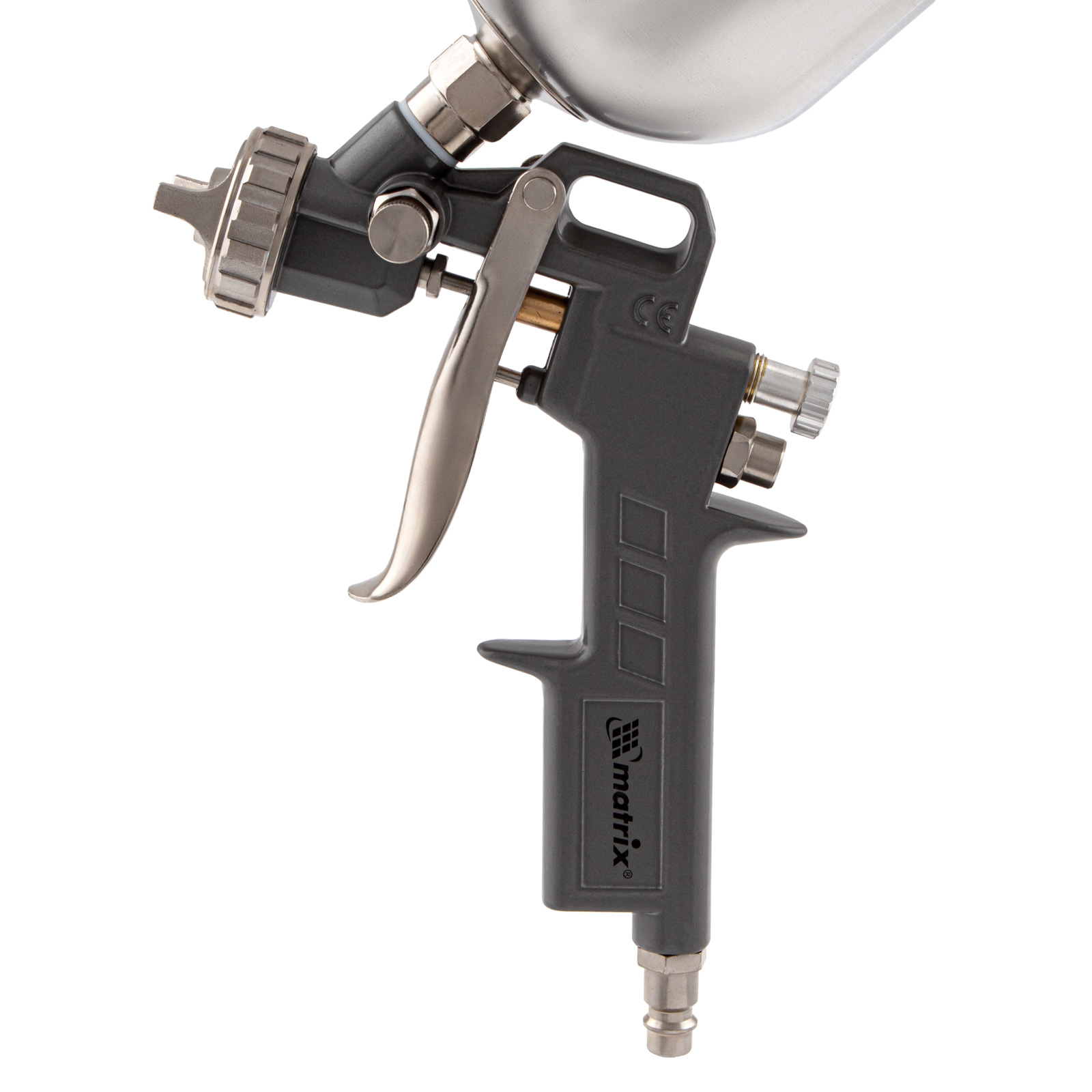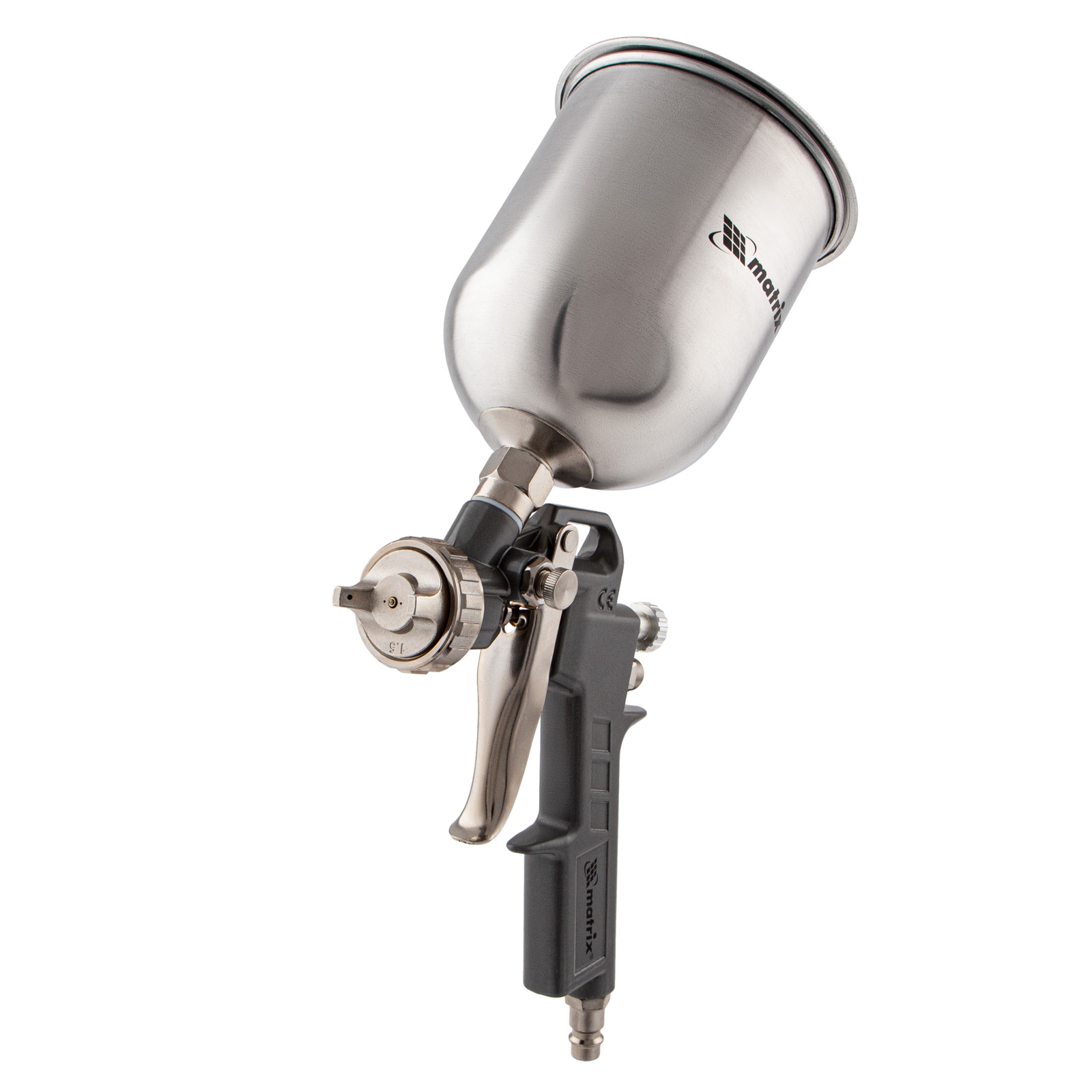 Краскораспылитель пневматический с верхним бачком v 0.6 л, сопло d 1.2, 1.5 и 1.8 мм matrix. Бренд: Matrix Гарантия: 1 год Область применения: покраска стен и потолков Страна производства: Китай Расход воздуха, лu002Fмин: 75.23 Средний расход воздуха, лu002Fмин: 230 Тип упаковки: картонная коробка Длина в упаковке, мм: 165 Высота в упаковке, мм: 110 Вес (брутто), кг: 0.66 Руководство по эксплуатации и гарантийный талон: 1 шт Пневматический краскораспылитель Matrix 57314 с верхним бачком объемом 0,6 л и соплами диаметром 1,2, 1,5 и 1,8 мм используется для окрашивания поверхностей и нанесения защитных составов. Он может работать с различными составами, такими как шпаклевка, лак и краска, т. к. в комплекте идет набор сменных сопел различного диаметра. Краскораспылитель пригодится в автосервисе или на стройке, а также на мебельном производстве для обработки дерева лаком. Преимущества Высокое качество работ — тип распыления MP позволяет получить среднее давление на выходе, обеспечивая равномерное окрашивание и снижение потерь краски. Обработка больших поверхностей — бак объемом 0,6 л обеспечивает значительный запас рабочего раствора, что позволяет реже прерываться для заправки. Верхнее расположение бака — такое решение экономит время на заправку, а также позволяет использовать всю краску полностью. Использование красок на основе растворителей — алюминиевый бак выдерживает воздействие агрессивных сред. Долговечность — металлический пистолет устойчив к износу и механическим повреждениям. Настройка параметров работы — можно установить величину расхода краски и выбрать форму распыления в зависимости от материала и площади обрабатываемой поверхности. Малый вес 0,52 кг — руки не устают даже при длительной работе.  развернуть описание ▼