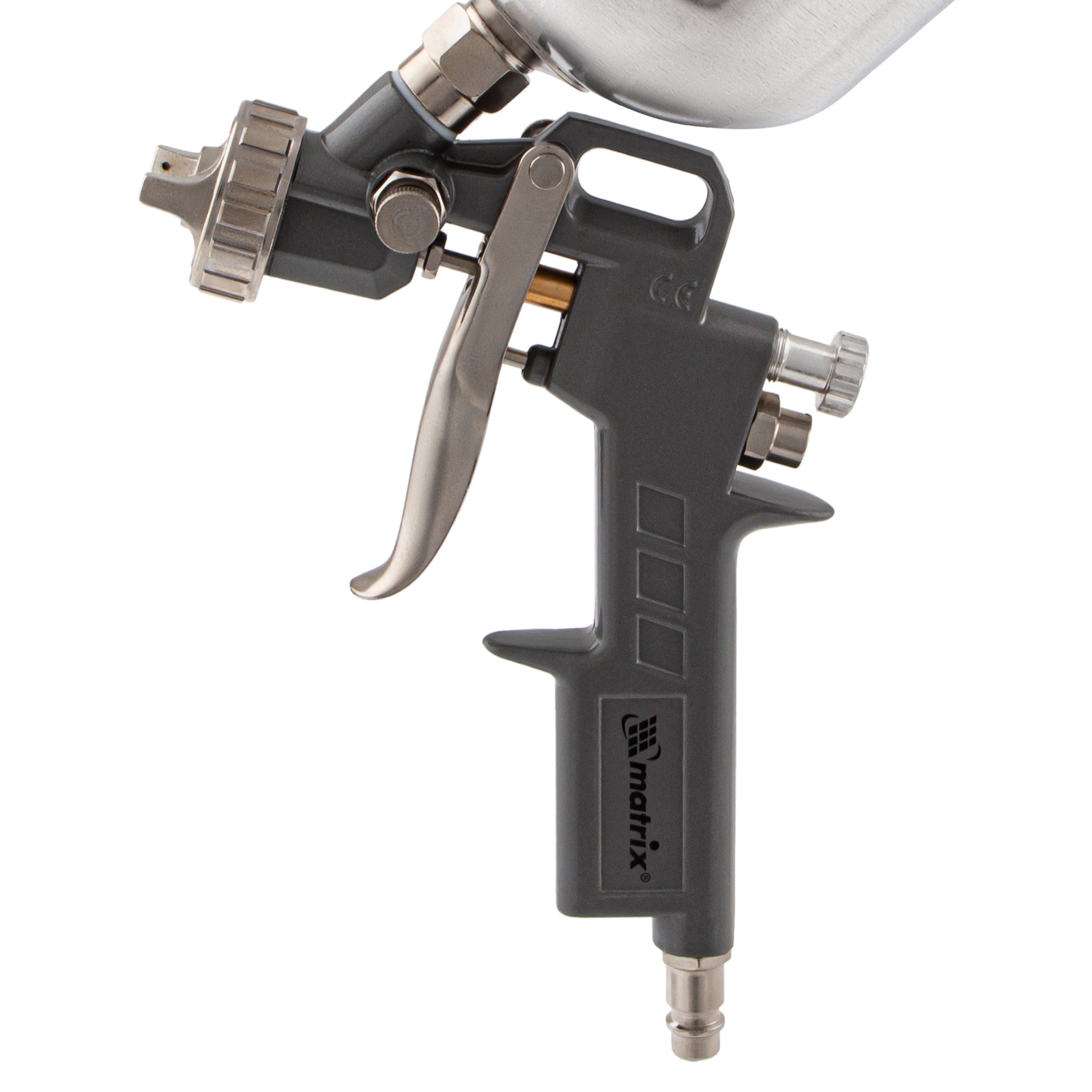 Краскораспылитель пневматический с верхним бачком v 1, 0 л, сопло d 1.2, 1.5 и 1.8 мм matrix. Бренд: Matrix Гарантия: 1 год Область применения: покраска стен и потолков Страна производства: Китай Расход воздуха, лu002Fмин: 75.23 Средний расход воздуха, лu002Fмин: 230 Тип упаковки: картонная коробка Длина в упаковке, мм: 225 Ширина в упаковке, мм: 130 Высота в упаковке, мм: 120 Вес (брутто), кг: 0.68 Руководство по эксплуатации и гарантийный талон: 1 шт Пневматический краскораспылитель Matrix 57315 с верхним бачком объемом 1,0 л и соплами диаметром 1,2, 1,5 и 1,8 мм используется для окрашивания поверхностей и нанесения защитных составов. Он может работать с различными составами, такими как шпаклевка, лак и краска, т. к. в комплекте идет набор сменных сопел различного диаметра. Краскораспылитель пригодится в автосервисе или на стройке, а также на мебельном производстве для обработки дерева лаком. Преимущества Высокое качество работ — тип распыления MP позволяет получить среднее давление на выходе, обеспечивая равномерное окрашивание и снижение потерь краски. Обработка больших поверхностей — увеличенный бак объемом 1 л обеспечивает значительный запас рабочего раствора, что позволяет реже прерываться для заправки. Верхнее расположение бака — такое решение экономит время на заправку, а также позволяет использовать всю краску полностью. Использование красок на основе растворителей — алюминиевый бак выдерживает воздействие агрессивных сред. Долговечность — металлический пистолет устойчив к износу и механическим повреждениям. Настройка параметров работы — можно установить величину расхода краски и выбрать форму распыления в зависимости от материала и площади обрабатываемой поверхности. Малый вес 0,56 кг — руки не устают даже при длительной работе.  развернуть описание ▼