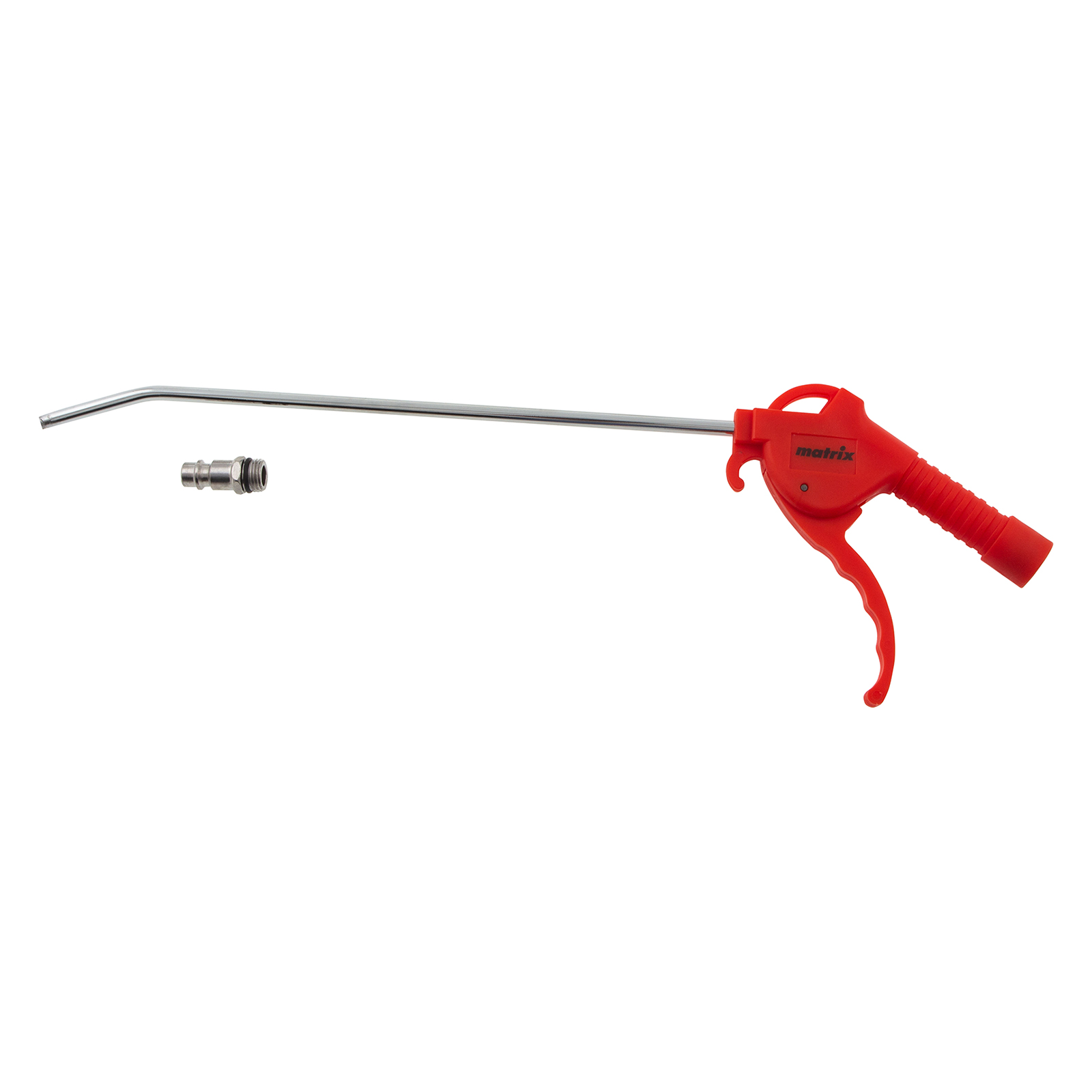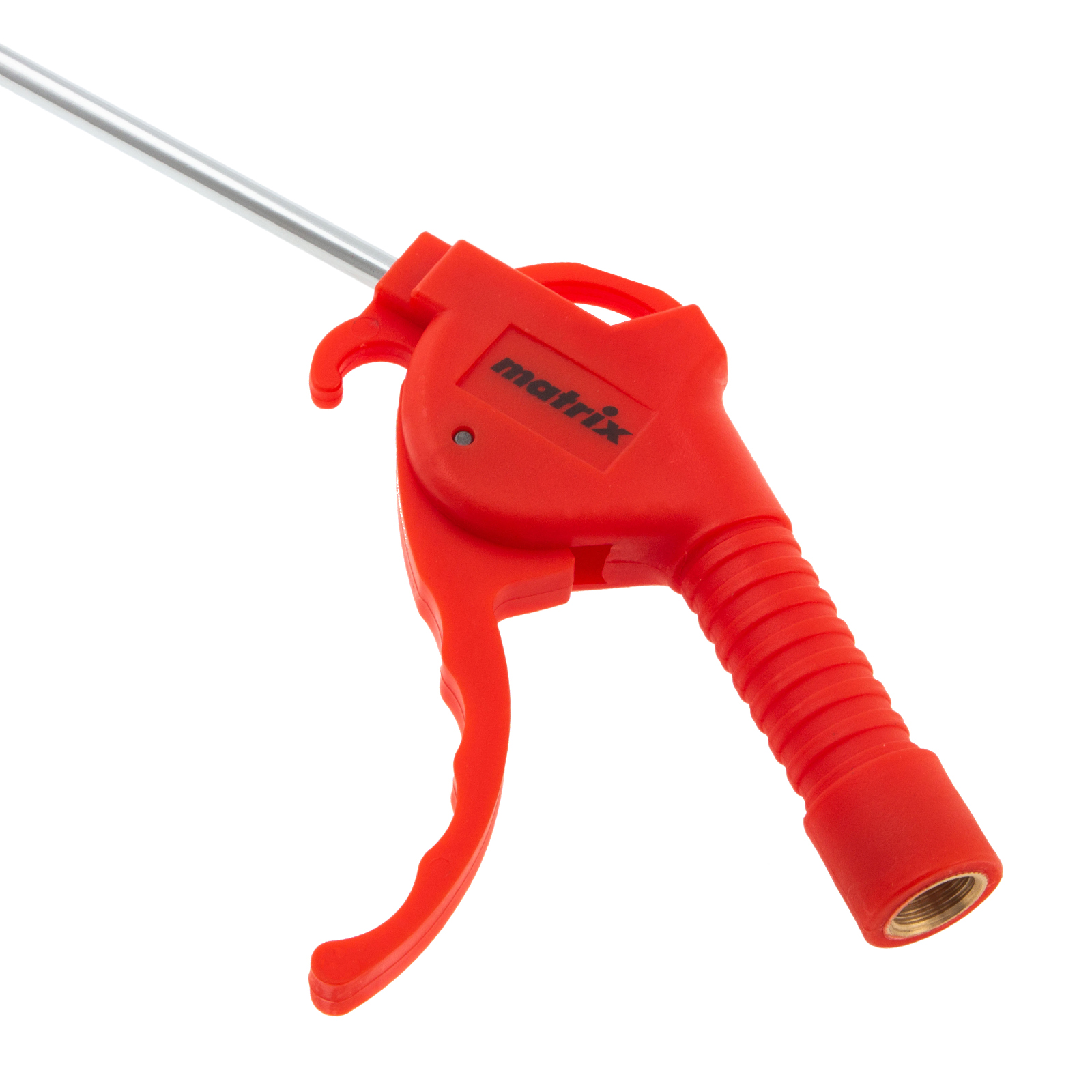 Пистолет продувочный с удлиненным изогнутым соплом, пневматический, 270 мм matrix. Бренд: Matrix Гарантия: 1 год Диаметр сопла: 2,7 мм Материал: ABS-пластик Страна производства: Китай Расход воздуха, лu002Fмин: 250 Тип упаковки: блистер Длина в упаковке, мм: 140 Высота в упаковке, мм: 420 Вес (брутто), кг: 0.15 Пистолет продувочный пневматический: 1 шт Штуцер: 1 шт Пистолет продувочный Matrix 57334 с удлиненным изогнутым соплом длиной 270 мм подходит для применения в быту, в автосервисах, в небольших мастерских и на строительных объектах. С помощью потока сжатого до 8 бар воздуха эффективно очищает отверстия, шланги, пазы деталей и поверхности с производительностью до 270 л/час. Продувочный пистолет отличается высоким уровнем пожарной безопасности, поэтому может использоваться во влажных помещениях. Преимущества Надежность и малый вес инструмента 190 г — корпус из прочного пластика не утяжеляет инструмент. Высокая эффективность — изогнутое сопло облегчает работу в труднодоступных местах, позволяя прочистить очень узкие отверстия. Комфортная работа — удобная рукоятка имеет рельефное покрытие, а спусковой крючок повторяет форму пальцев.  развернуть описание ▼