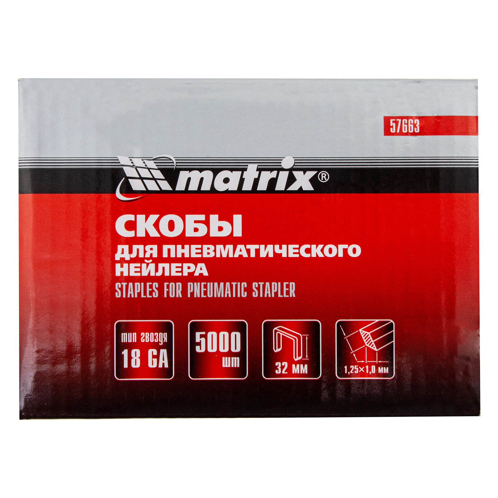 Скобы для пневматического степлера 18ga, 1.25 х 1 мм длина 32 мм ширина 5,7 мм, 5000 шт Matrix