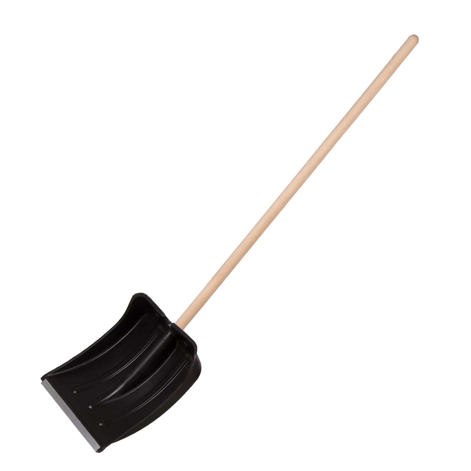 Лопата для уборки снега пластиковая, 380х385х1420 мм, деревянный черенок