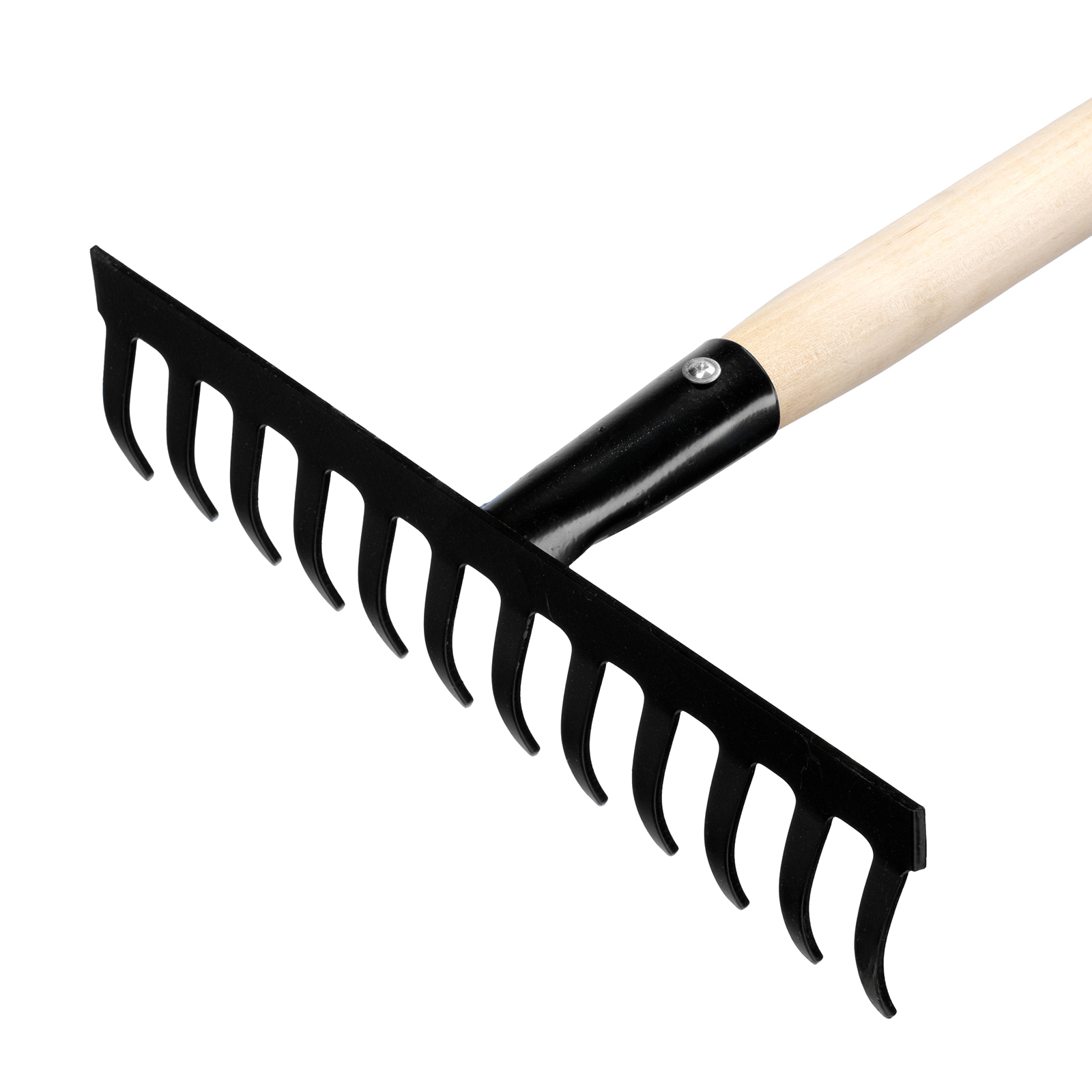 Грабли стальные, 300х1300 мм, 12 прямых зубьев, деревянный черенок, сибртех
