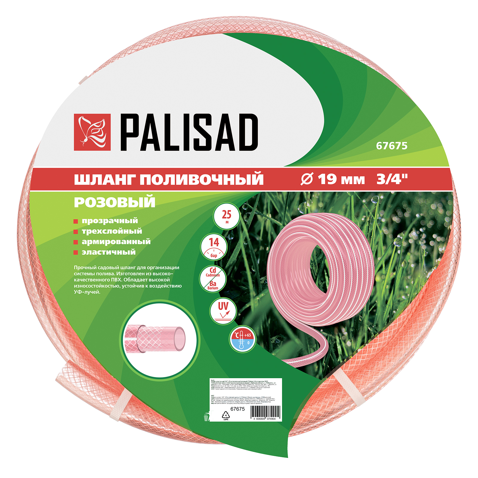 Шланг эластичный 3/4, 25 м, прозрачный розовый Palisad
