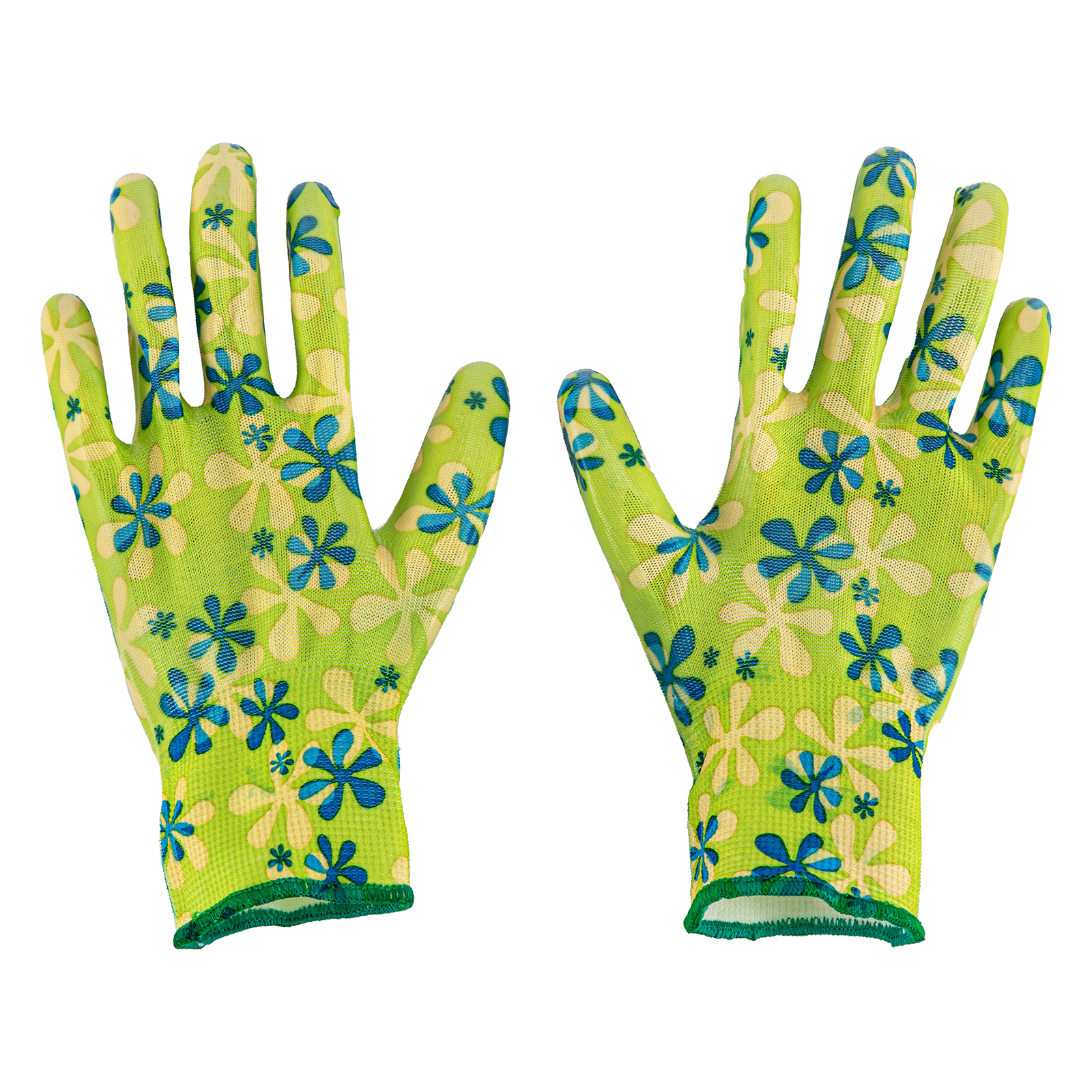 Перчатки садовые из полиэстера с нитрильным обливом, зеленые, L Palisad
