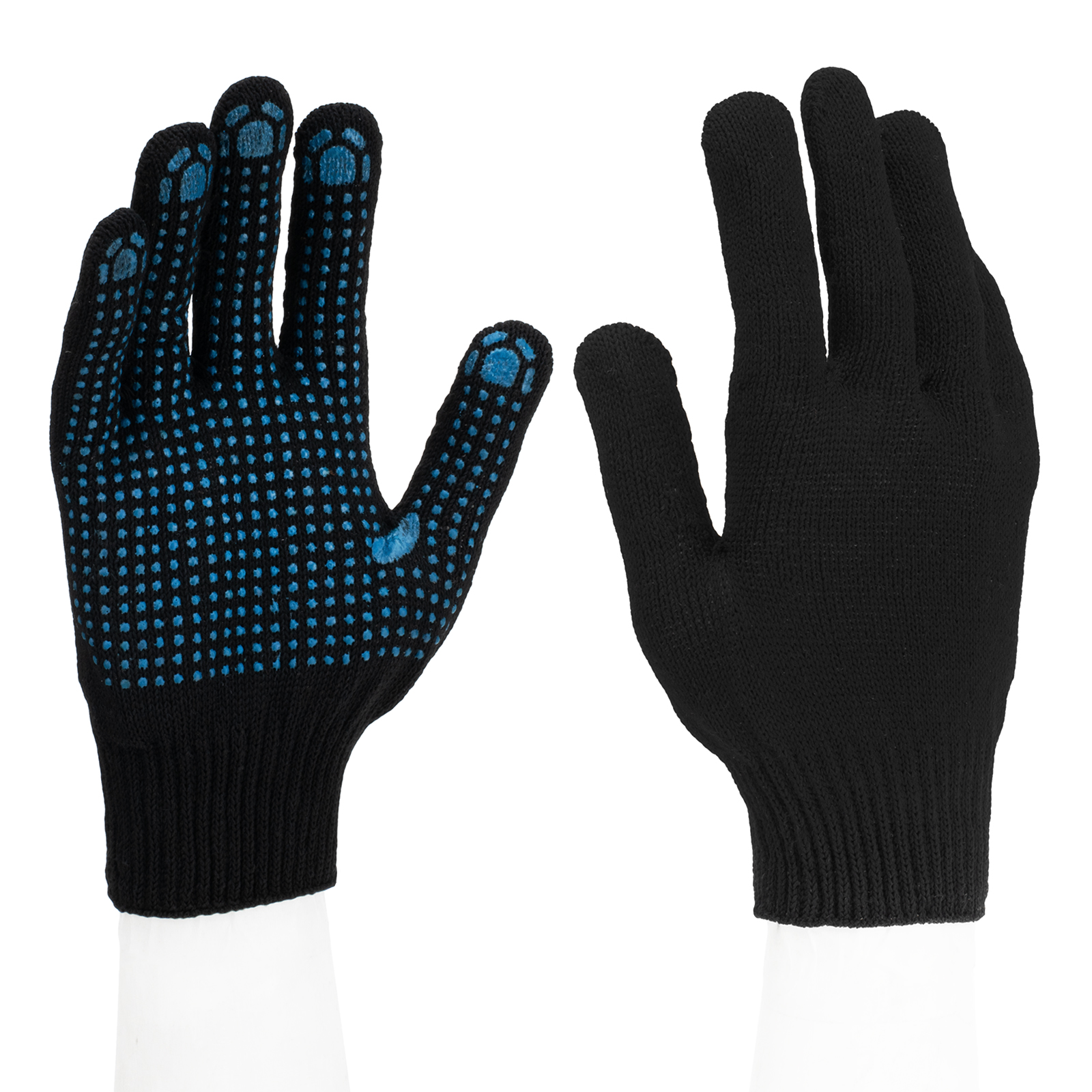 Перчатки трикотажные, пвх-покрытие точка, 10 класс, черные