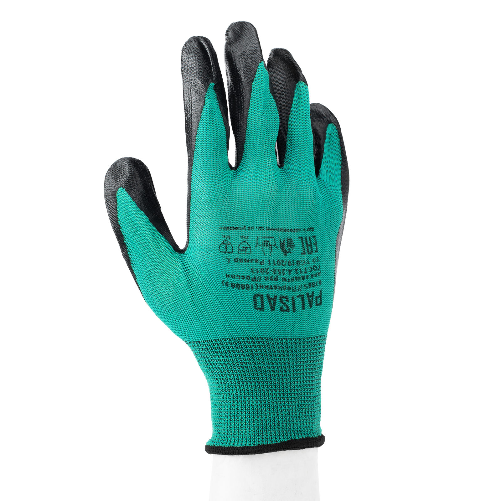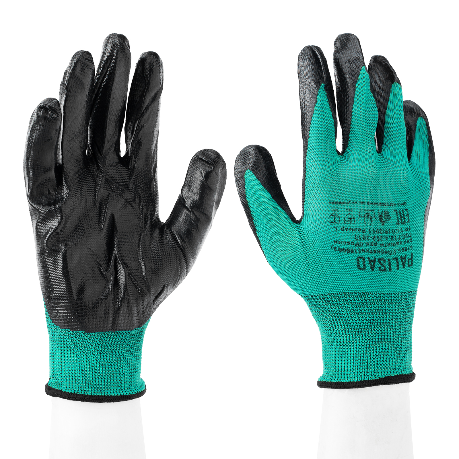 Перчатки полиэфирные с черным нитрильным покрытием маслобензостойкие, L, 15 класс вязки Palisad