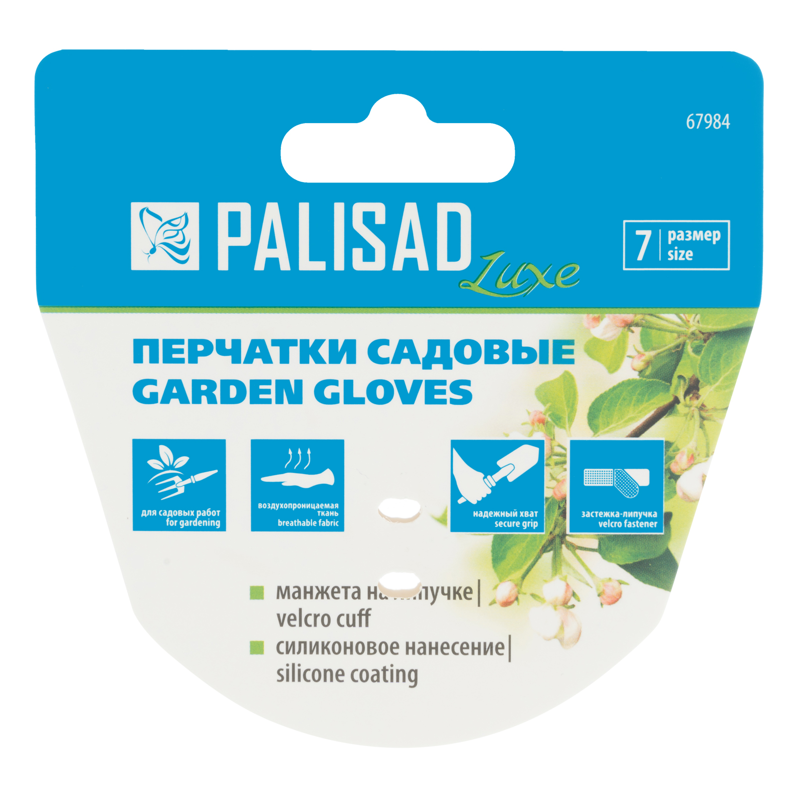 Перчатки садовые на липучке, силиконовое нанесение, размер 7, luxe palisad. Бренд: Palisad Материал подклада: нейлон, полиамид, полиуретан, полиэстер, силикон, спандекс Цвет: зелено-бирюзовый Страна производства: Китай Длина, мм: 245 Ширина, мм: 95 Тип упаковки: подвесная карта Длина в упаковке, мм: 320 Ширина в упаковке, мм: 120 Вес (брутто), кг: 0.065 Перчатки: 1 пара Перчатки на «липучке» Palisad Luxe 67984 размера 7, с силиконовым нанесением, защищают руки от царапин и порезов при проведении садовых работ. Они не стесняют движений и удобны для работы с мелким садовым инструментом. Перчатки пригодятся владельцам дачных участков. Преимущества Износостойкость — прочный материал (сочетание полиуретана, полиэстера, спандекса, полиамида и нейлона) отличается повышенной стойкостью к истиранию. Надежный хват — силиконовое покрытие перчаток предотвращает выскальзывание садовых инструментов и других предметов из рук. Комфортное использование — благодаря дышащим свойствам материала руки не потеют при проведении работ. Удобная посадка — манжеты застегиваются на «липучки», поэтому перчатки не сползают с рук.  развернуть описание ▼