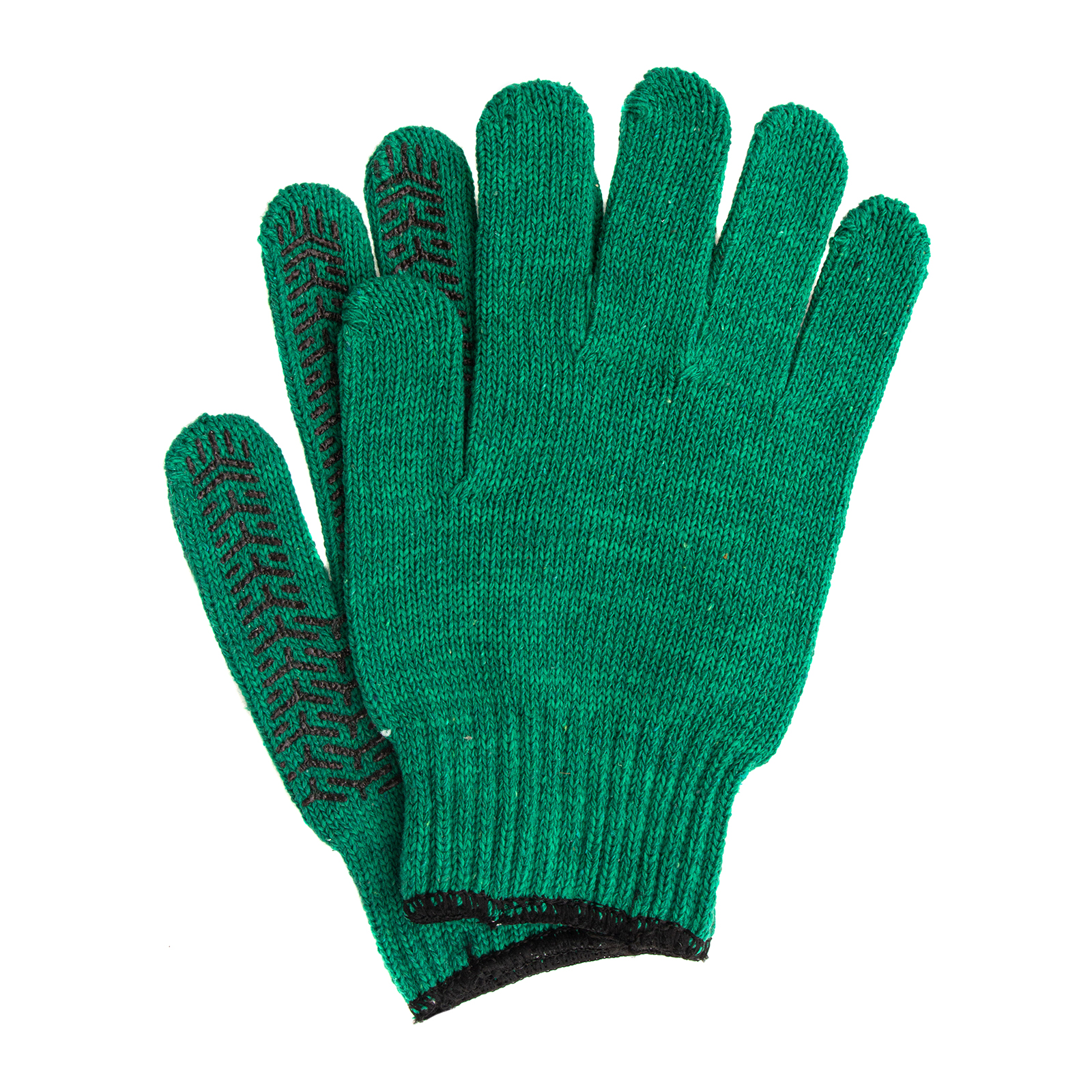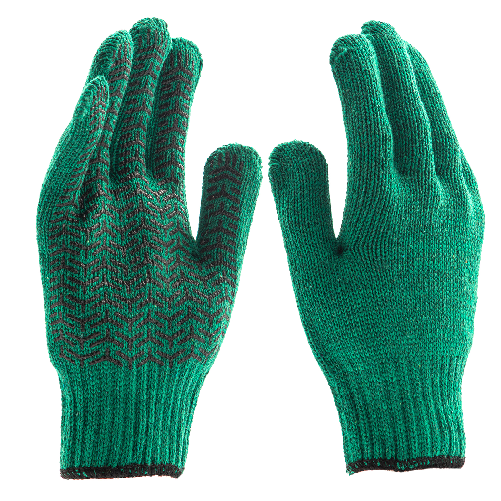 Перчатки трикотажные усиленные, гелевое пвх-покрытие, 7 класс, зеленые сибртех