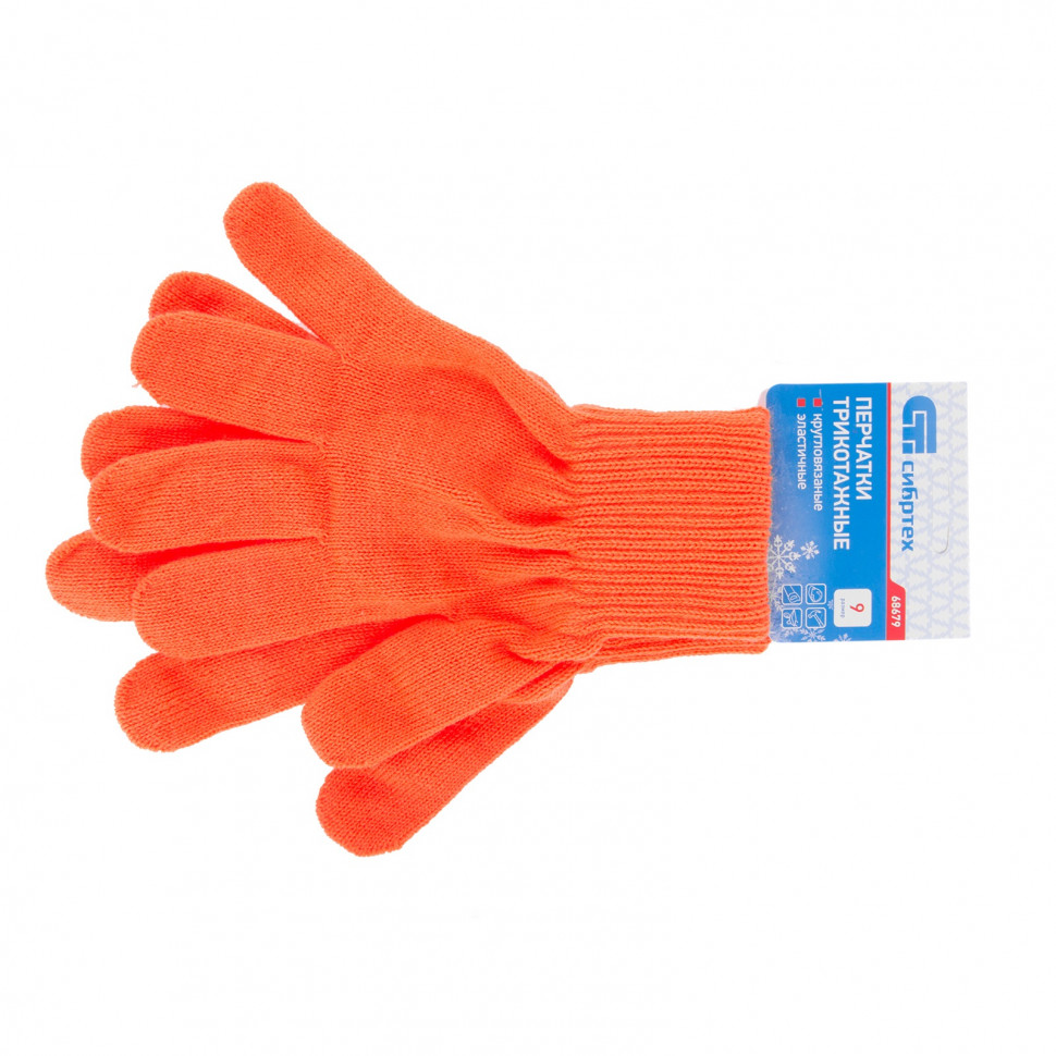 Перчатки трикотажные, акрил, оранжевый, двойная манжета россия сибртех