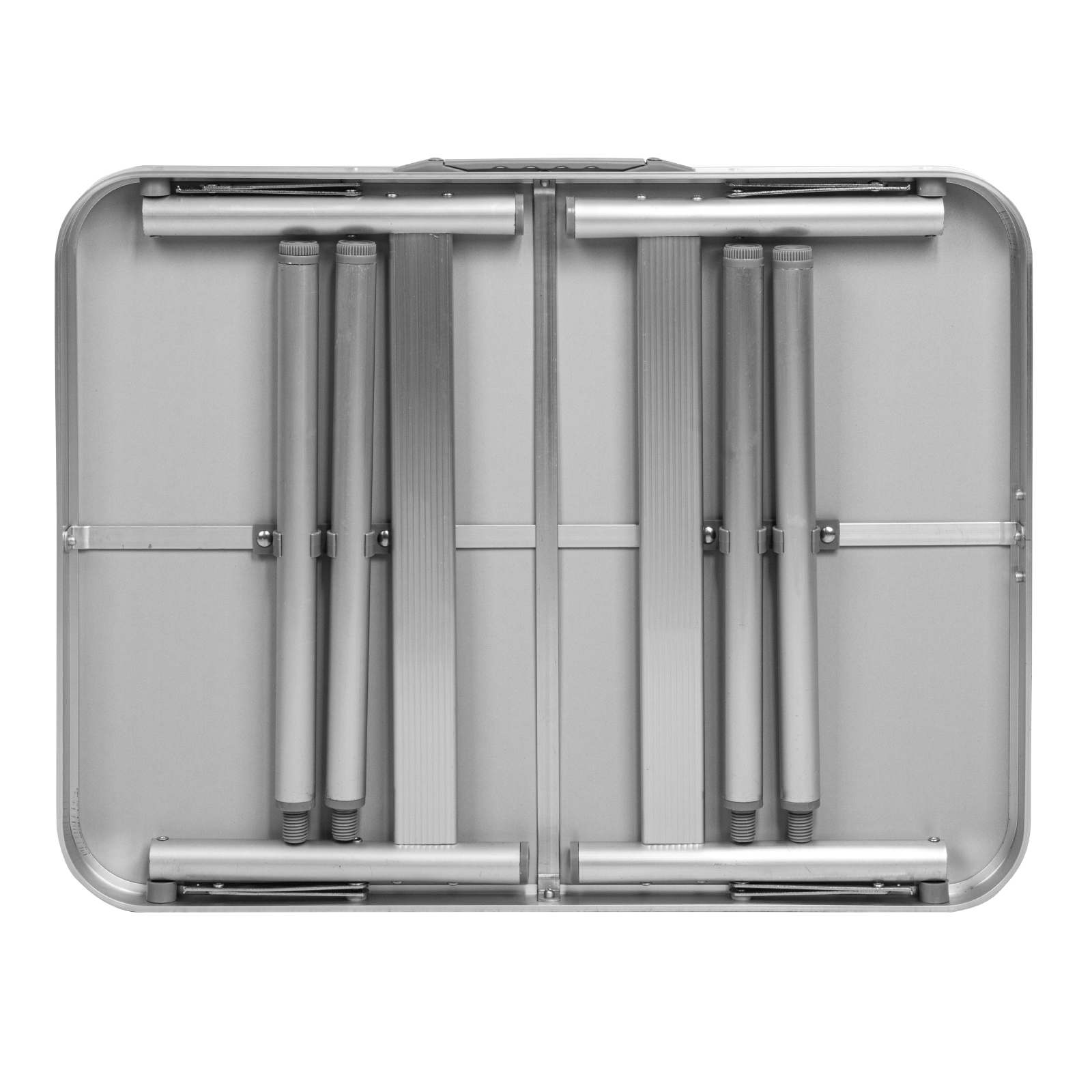Складной стол Palisad Camping 69582 размером 600 х 450 х 250 / 590 мм, со столешницей из МДФ, позволяет организовать прием пищи для нескольких человек. Пригодится во время отдыха на дачном участке, на пикнике, а также послужит дополнительным столом в случае визита гостей. За счет алюминиевых ножек имеет облегченную конструкцию и весит всего 2,52 кг, поэтому удобен в транспортировке. Благодаря составным ножкам стол можно зафиксировать на высоте 25 или 59 см.