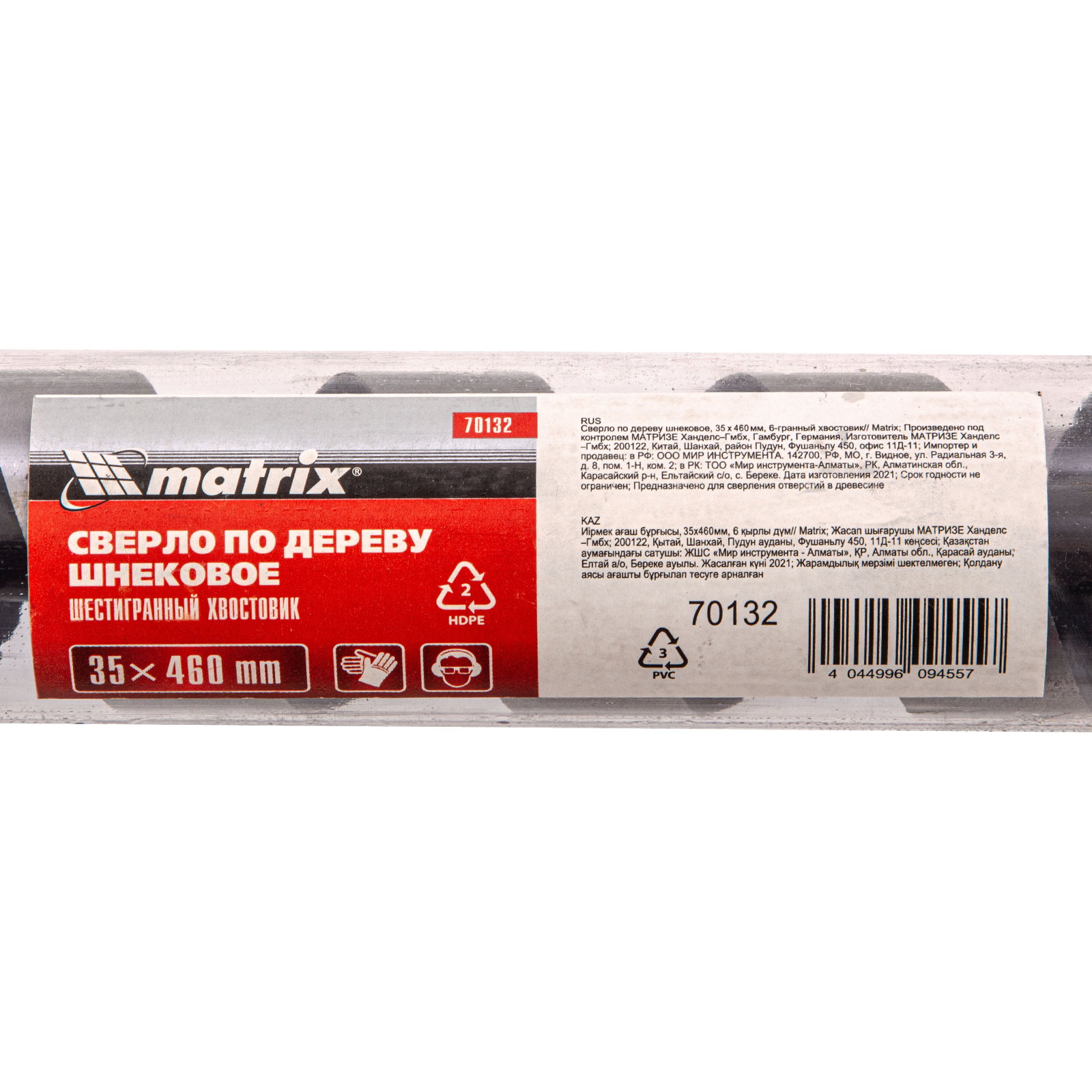 Сверло по дереву шнековое, 35 х 460 мм, шестигранный хвостовик Matrix