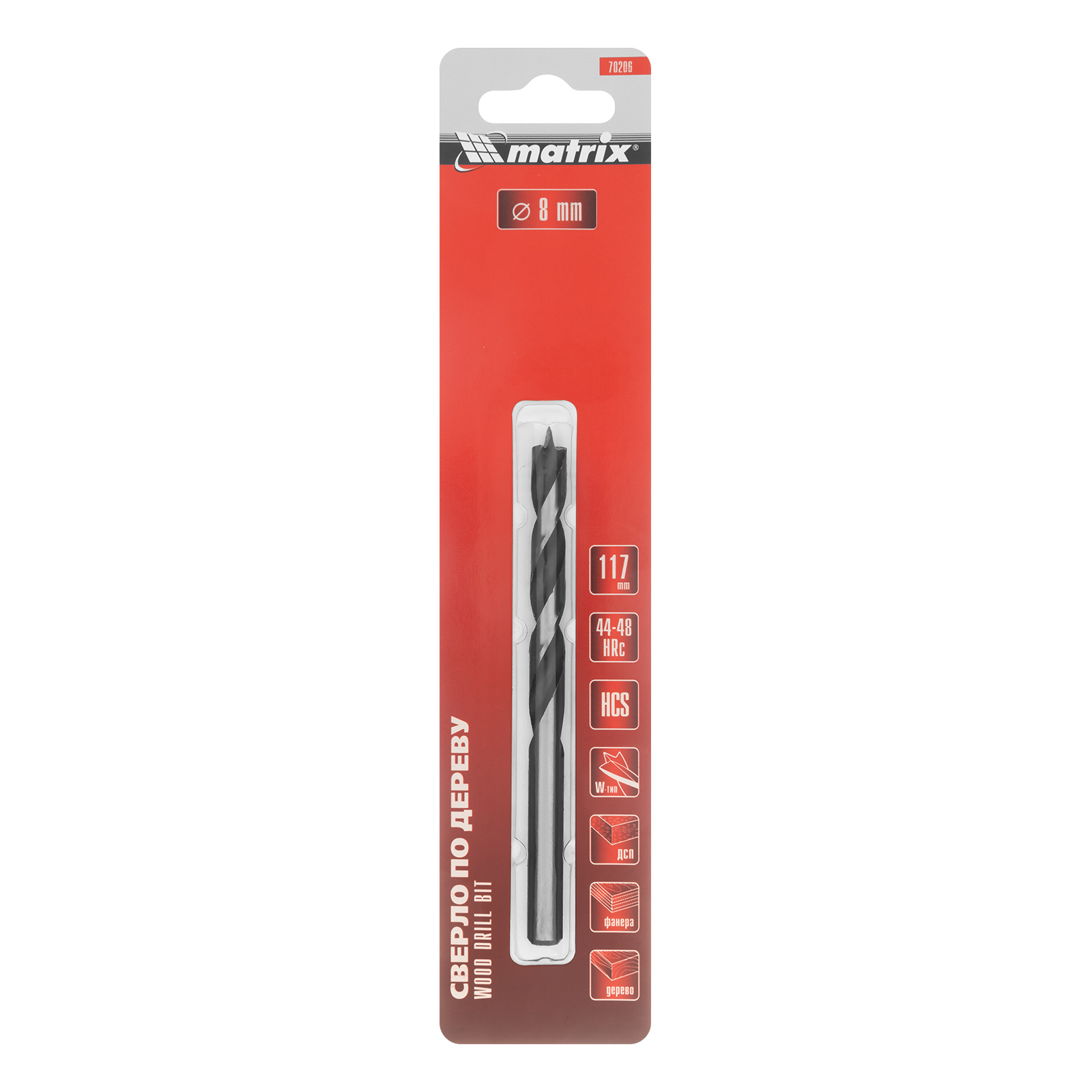 Сверло по дереву, 8 X 117 мм, цилиндрический хвостовик Matrix