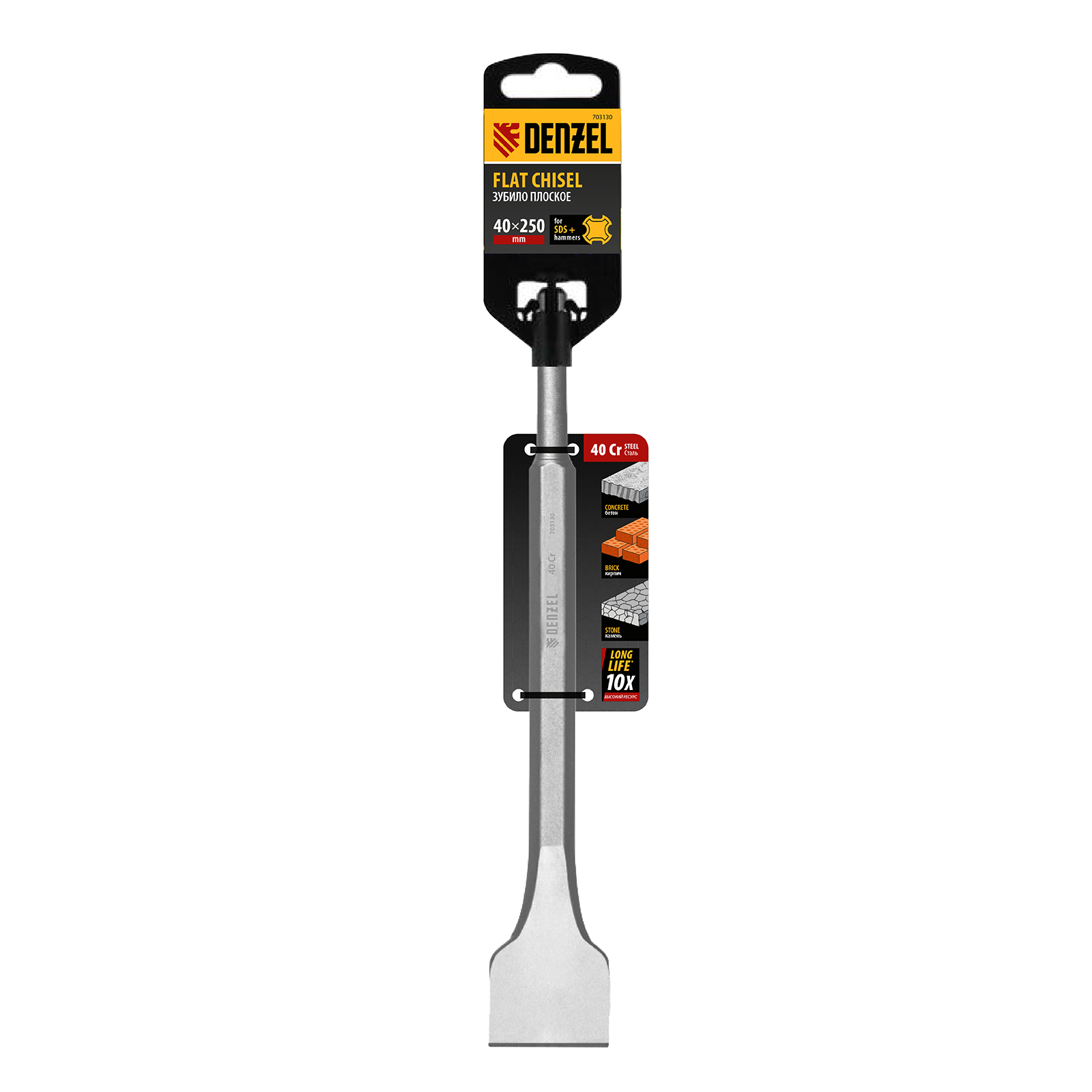 Зубило, 14 х 40 х 250 мм, 40cr, Sds Plus Denzel