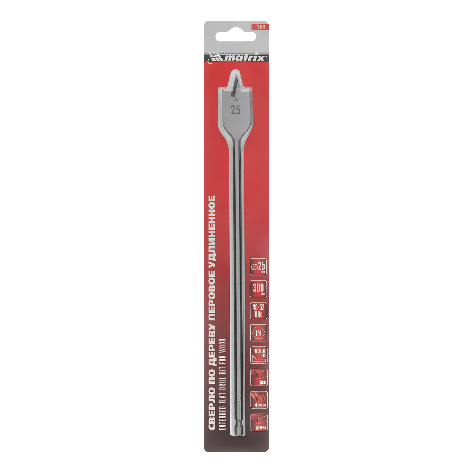 Сверло по дереву перовое удлиненное, 25 х 300 мм, шестигранный хвостовик Matrix