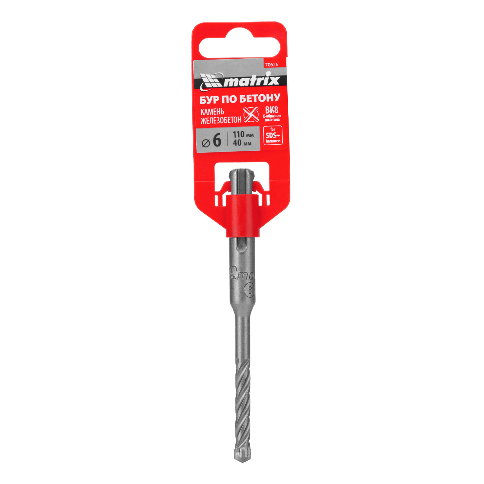 Бур по бетону, 6 X 110 мм, Sds Plus C крестовой пластиной Matrix