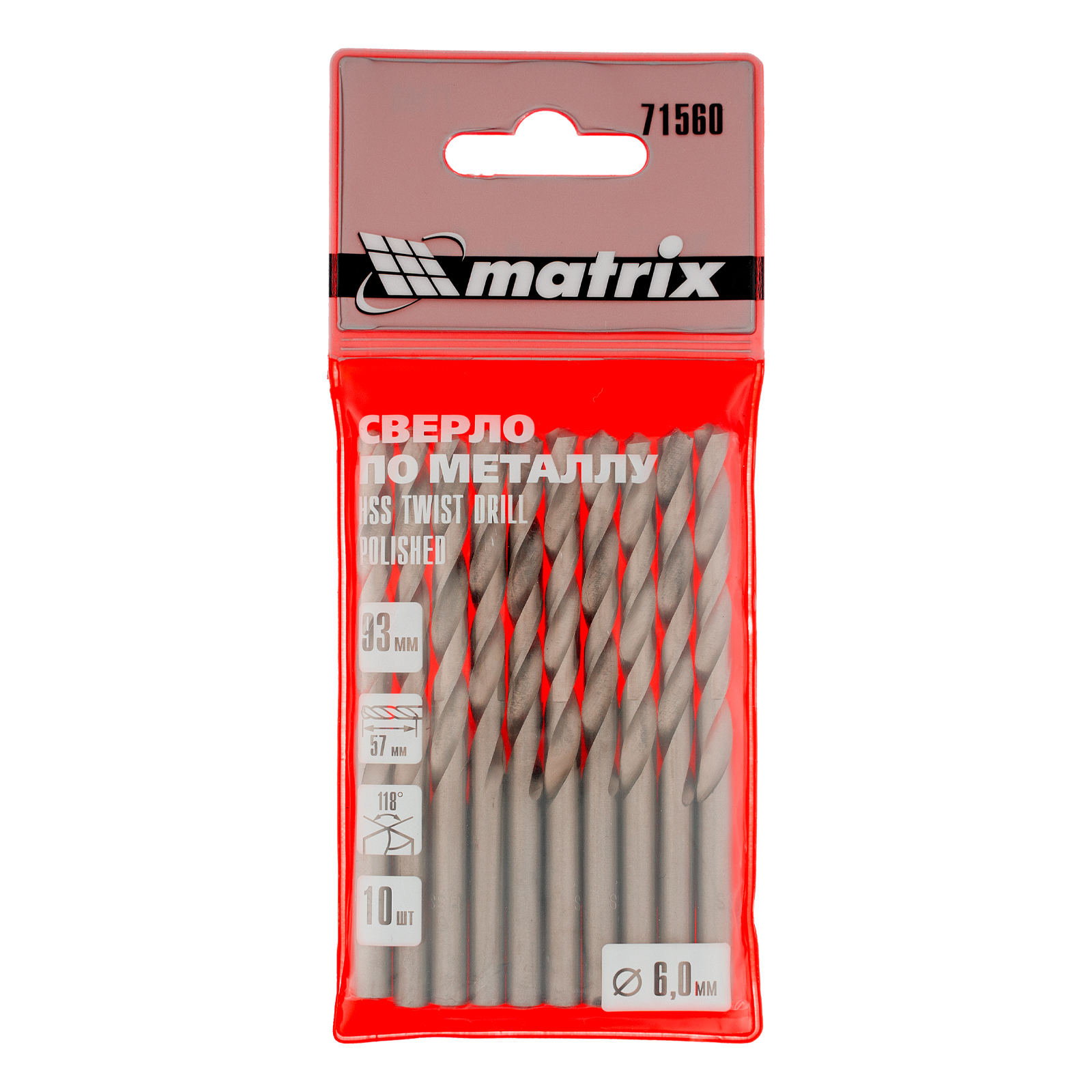 Сверло по металлу, 6 мм, полированное, Hss, 10 шт, цилиндрический хвостовик Matrix