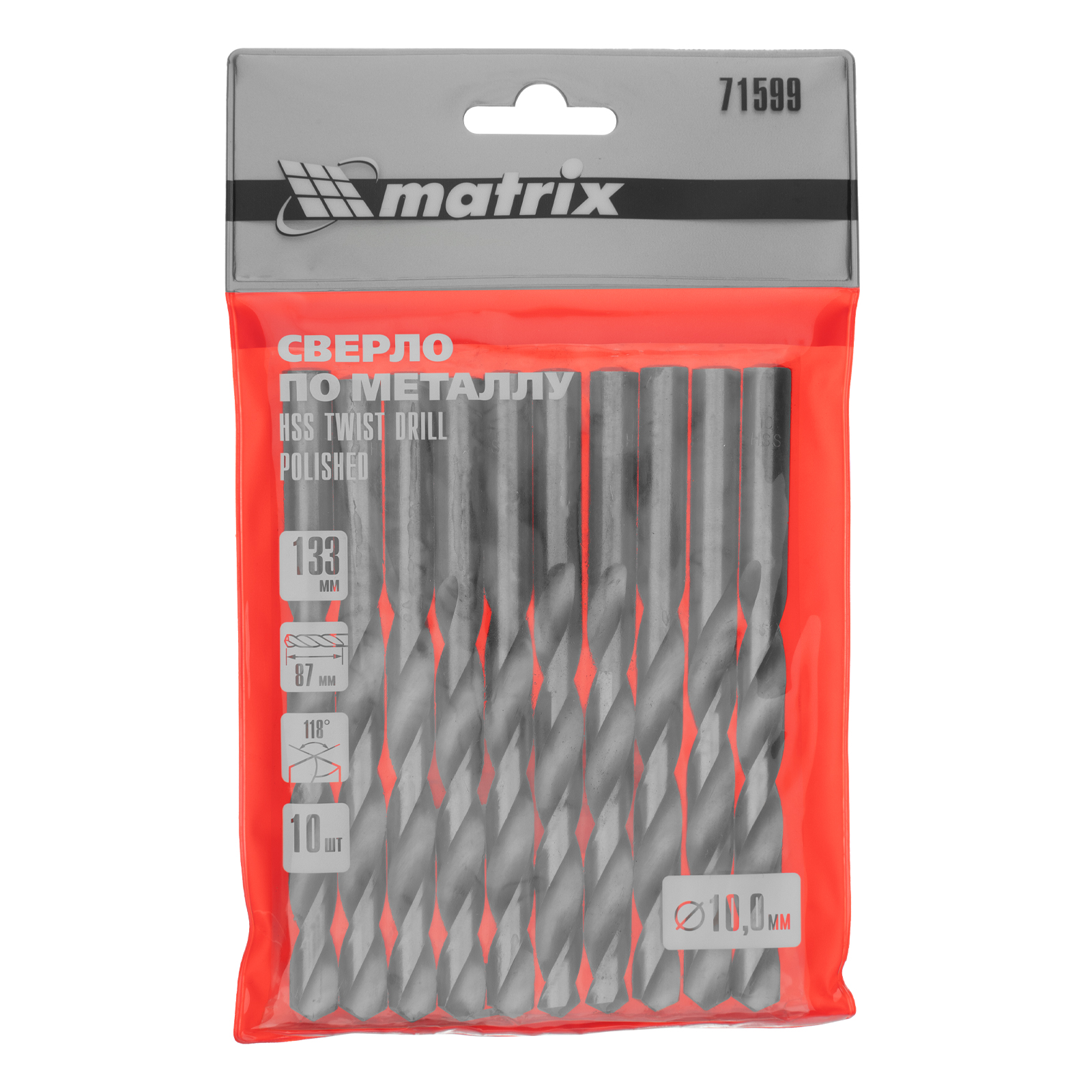 Сверло по металлу, 10 мм, полированное, Hss, 10 шт, цилиндрический хвостовик Matrix