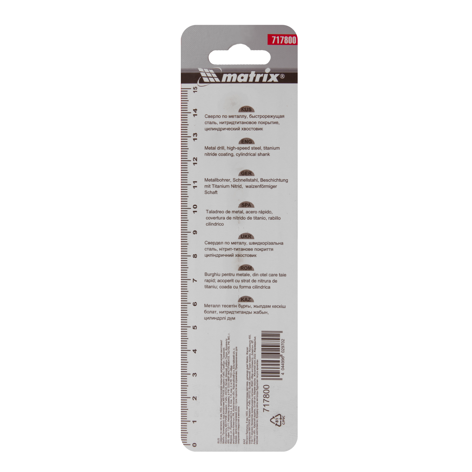 Сверло по металлу, 8 мм, Hss, нитридтитановое покрытие, цилиндрический хвостовик Matrix