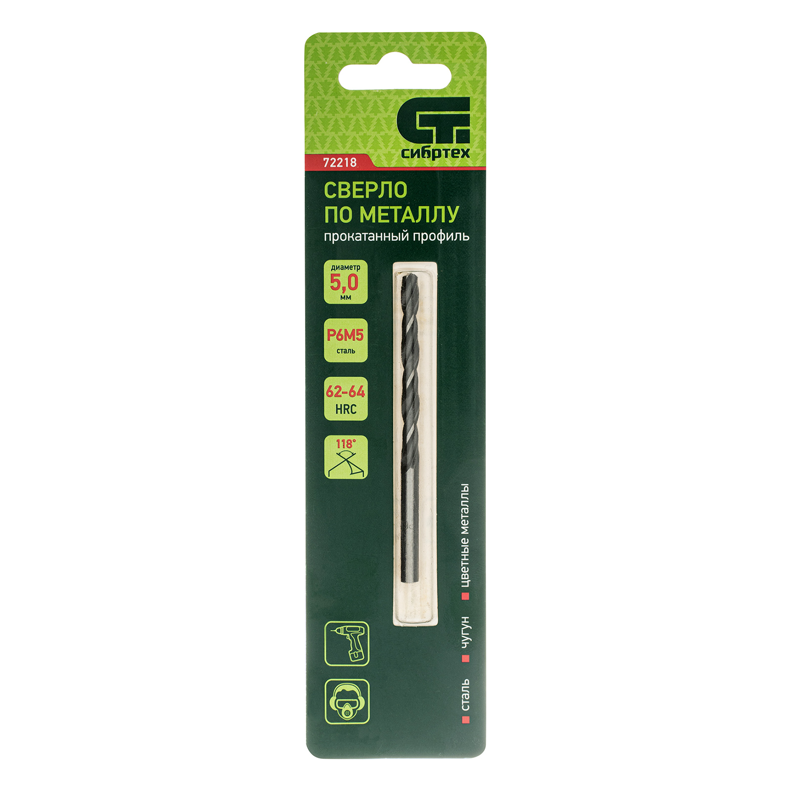Сверло по металлу, 5 мм, р6м5 сибртех