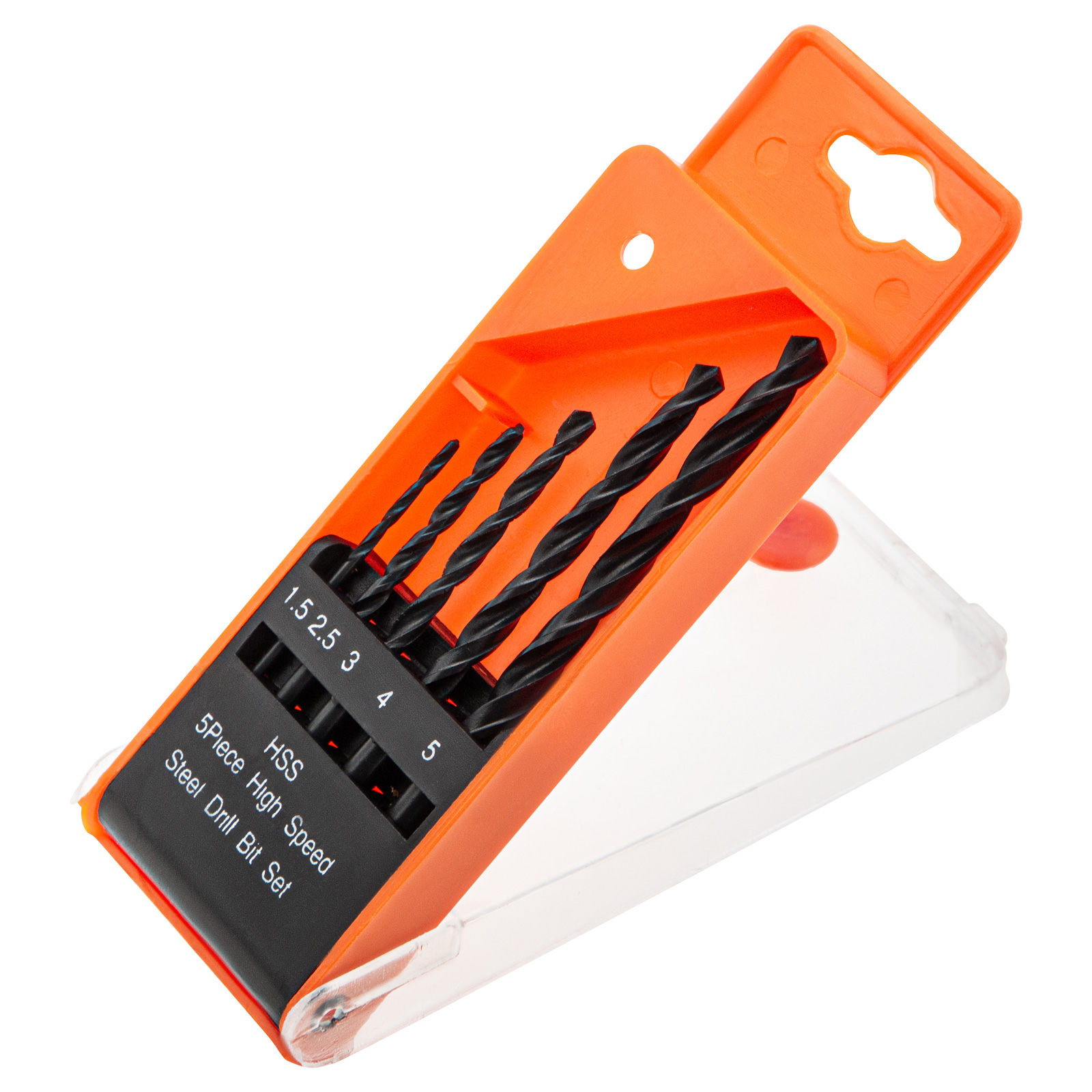 Набор сверл по металлу, 1.5-2.5-3-4-5 мм, Hss, 5 шт, пластиковый бокс, цилиндрический хвостовик Sparta