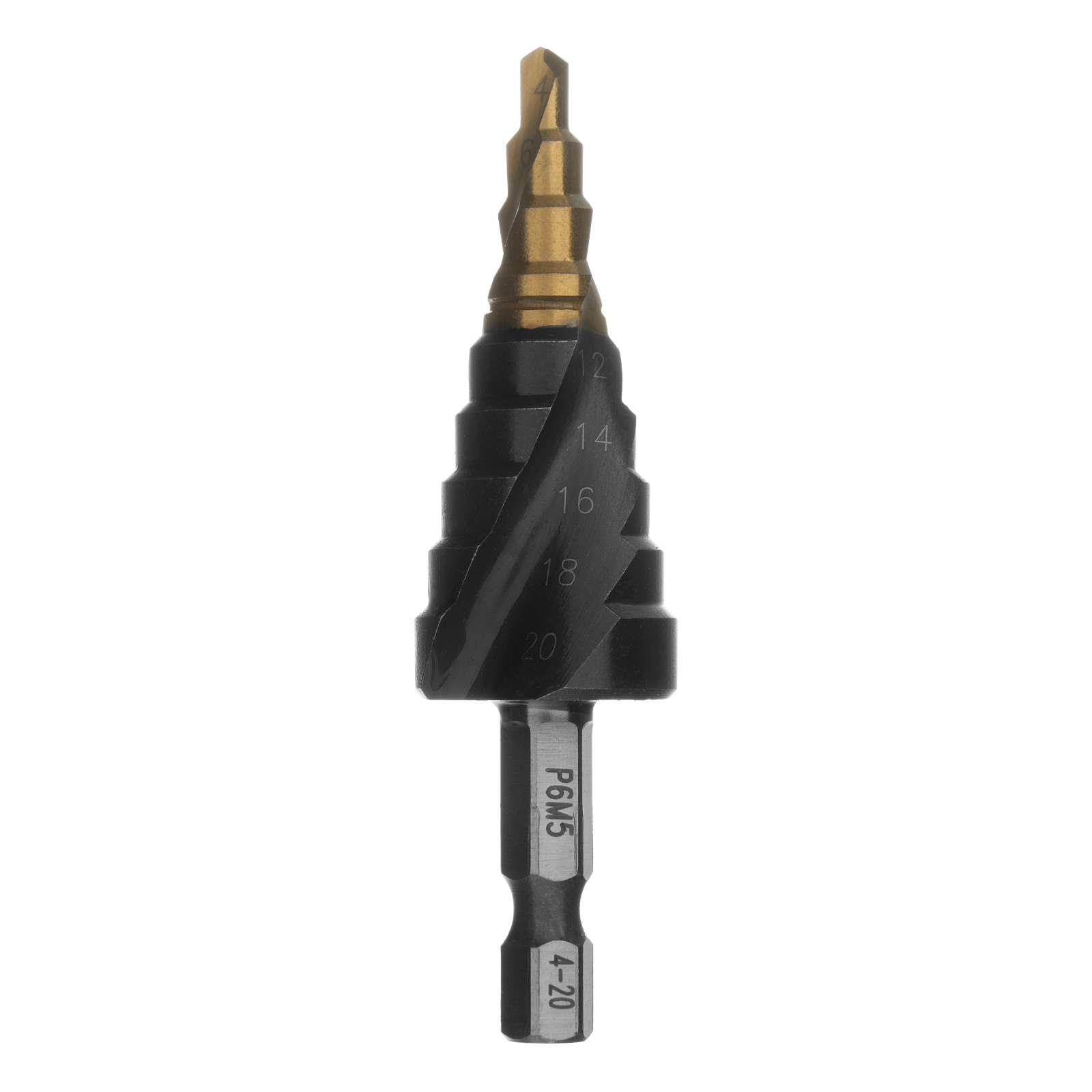 Сверло ступенчатое 4-6-8-10-12-14-16-18-20 мм, р6м5, 6-гр. хвостовик Denzel