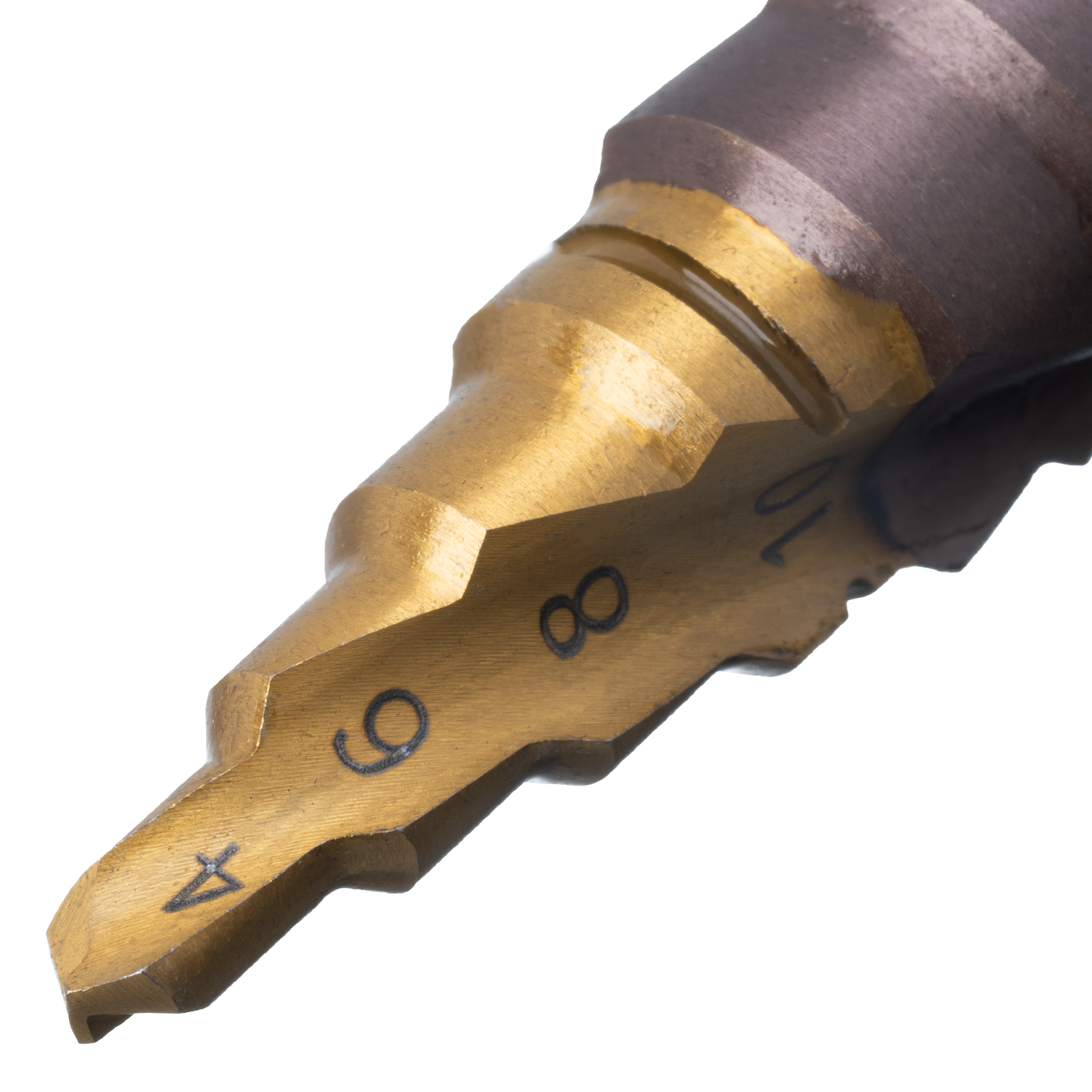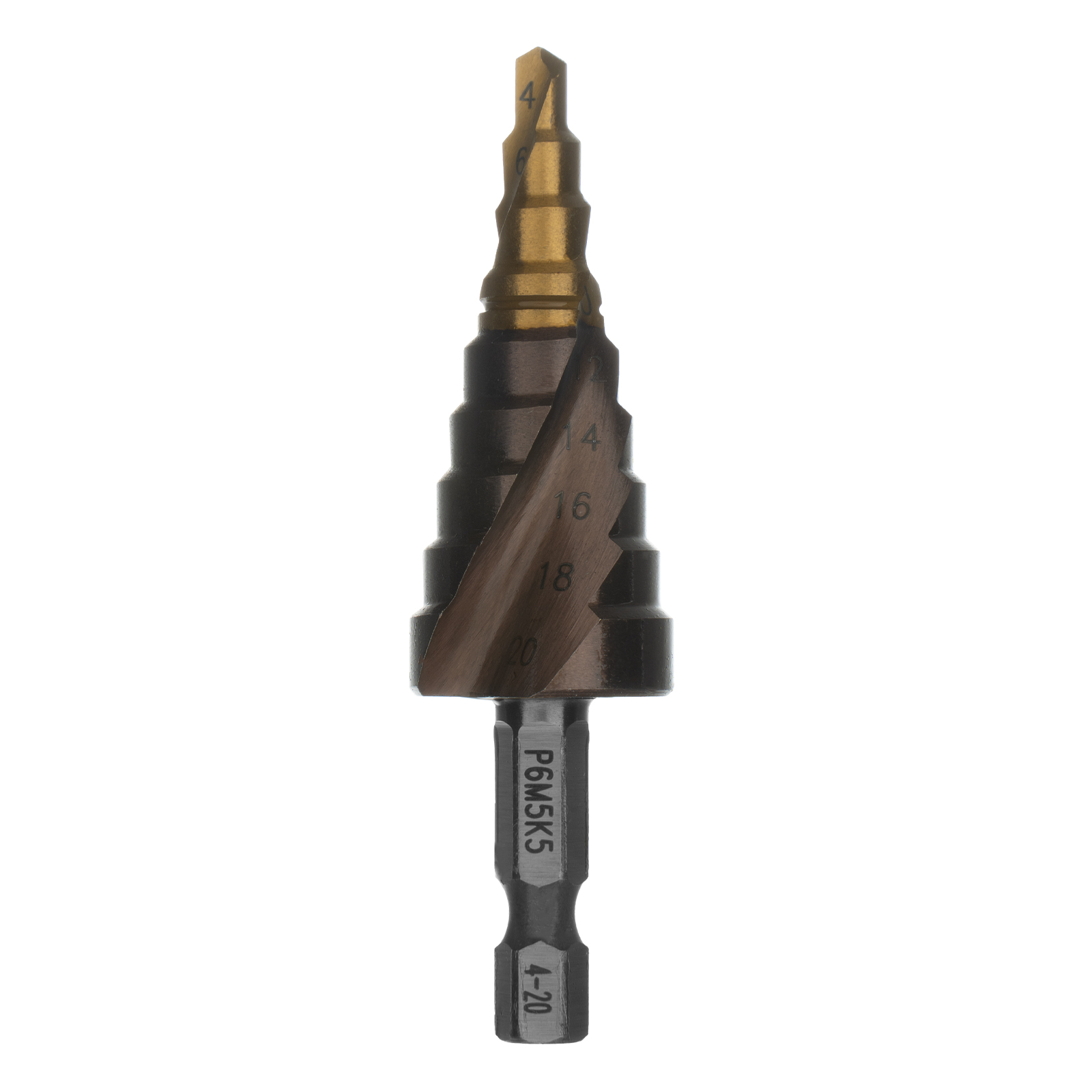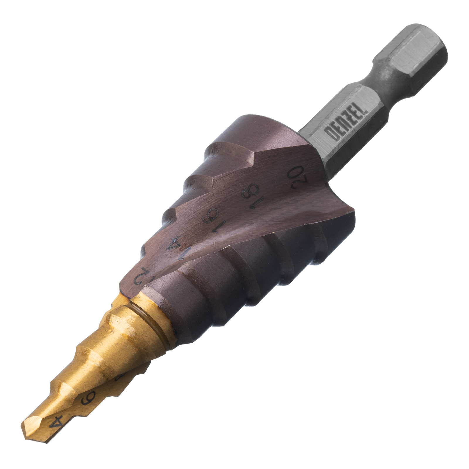Сверло ступенчатое 4-6-8-10-12-14-16-18-20 мм, р6м5к5, 6-гр. хвостовик Denzel