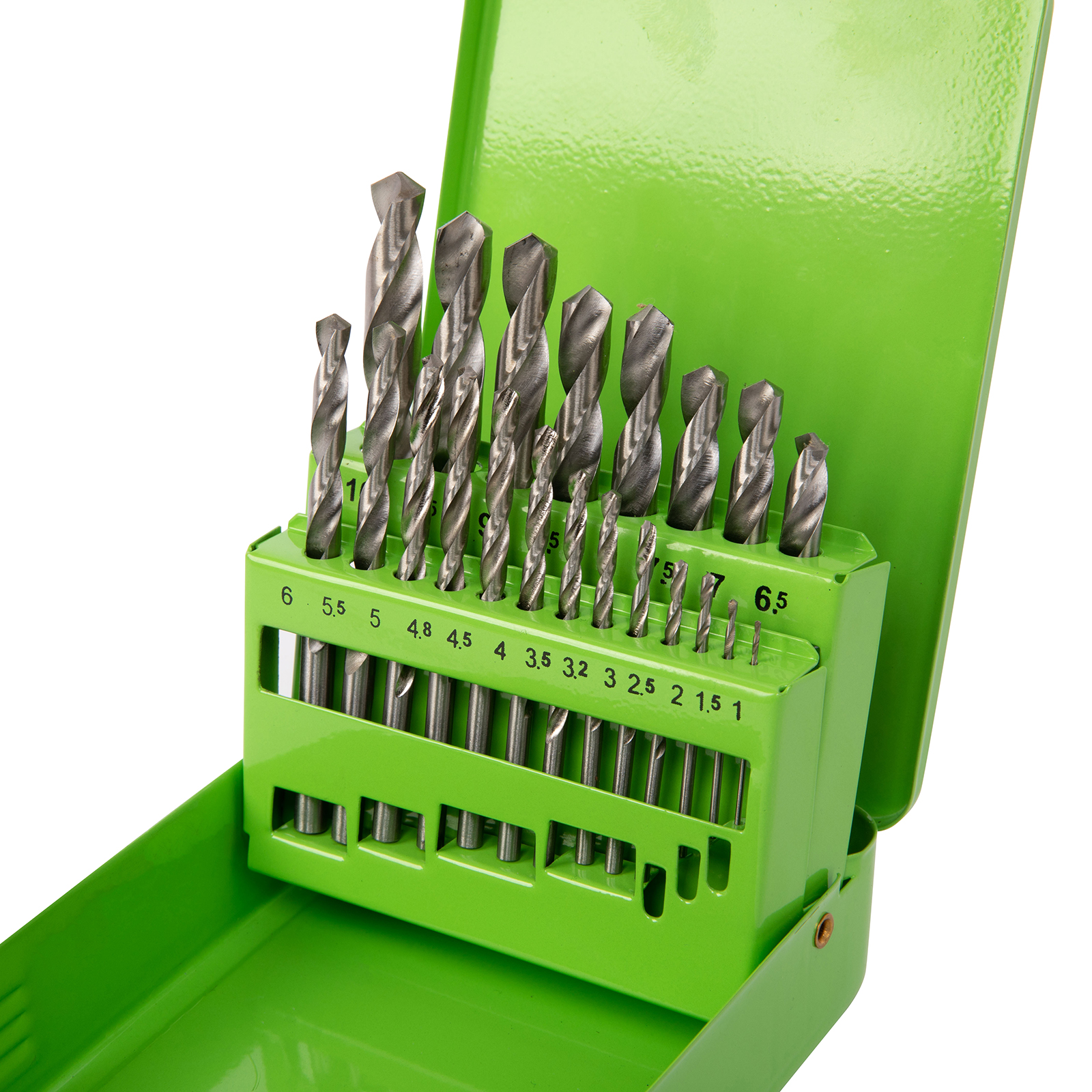 Набор сверл по металлу, 1-10 мм, (через 0.5 мм +3.2 и 4.8 мм) hss 21 шт, металлический бокс, цилиндрический хвостовик сибртех. Бренд: Сибртех Марка стали: Р4М4Х2 Материал обработки: металл Тип хвостовика: цилиндрический Страна производства: Китай Длина в упаковке, мм: 150 Вес (брутто), кг: 0.53 Сверло по металлу 1, 1,5, 2, 2,5, 3, 3,2, 3,5, 4, 4,5, 4,8, 5, 5,5, 6, 6,5, 7, 7,5, 8, 8,5, 9, 9,5, 10: 21 шт Пластиковый кейс: 1 шт Набор сверл по металлу Сибртех 723756 диаметром 1-10 мм (через 0,5 мм, 3,2, 4,8 мм), из стали HSS, с цилиндрическим хвостовиком, состоит из 21 шт. и упакован в металлический бокс. Используется для получения отверстий в черных металлах, в том числе стали и чугуне. Большой выбор оснасток позволяет точно подобрать необходимый размер. Набор поставляется в надежном металлическом боксе и пригодится во время строительства и ремонта, а также будет полезен для бытовых работ. Преимущества Прочность — сверла изготовлены из быстрорежущей стали, устойчивой к механическому воздействию и перегреву. Высокий ресурс работоспособности — режущие кромки твердостью 59-62 HRC долго держат заточку. Универсальность — сверла с цилиндрическими хвостовиками совместимы со всеми типами патронов. Улучшенный отвод стружки — поверхность оснасток отполирована, что уменьшает их трение о стенки отверстий. Защита от заклинивания — диаметр направляющей части сверл уменьшается по направлению к хвостовику. Быстрый выбор оснастки — сверла помещены в гнезда с обозначениями размеров.  развернуть описание ▼