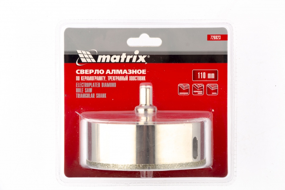 Сверло алмазное по керамограниту, 110 х 67 мм, трехгранный хвостовик Matrix Сверло алмазное по керамограниту, 110 х 67 мм, трехгранный хвостовик Matrix Сверло алмазное по керамограниту, 110 х 67 мм, трехгранный хвостовик Matrix