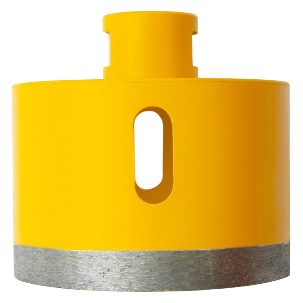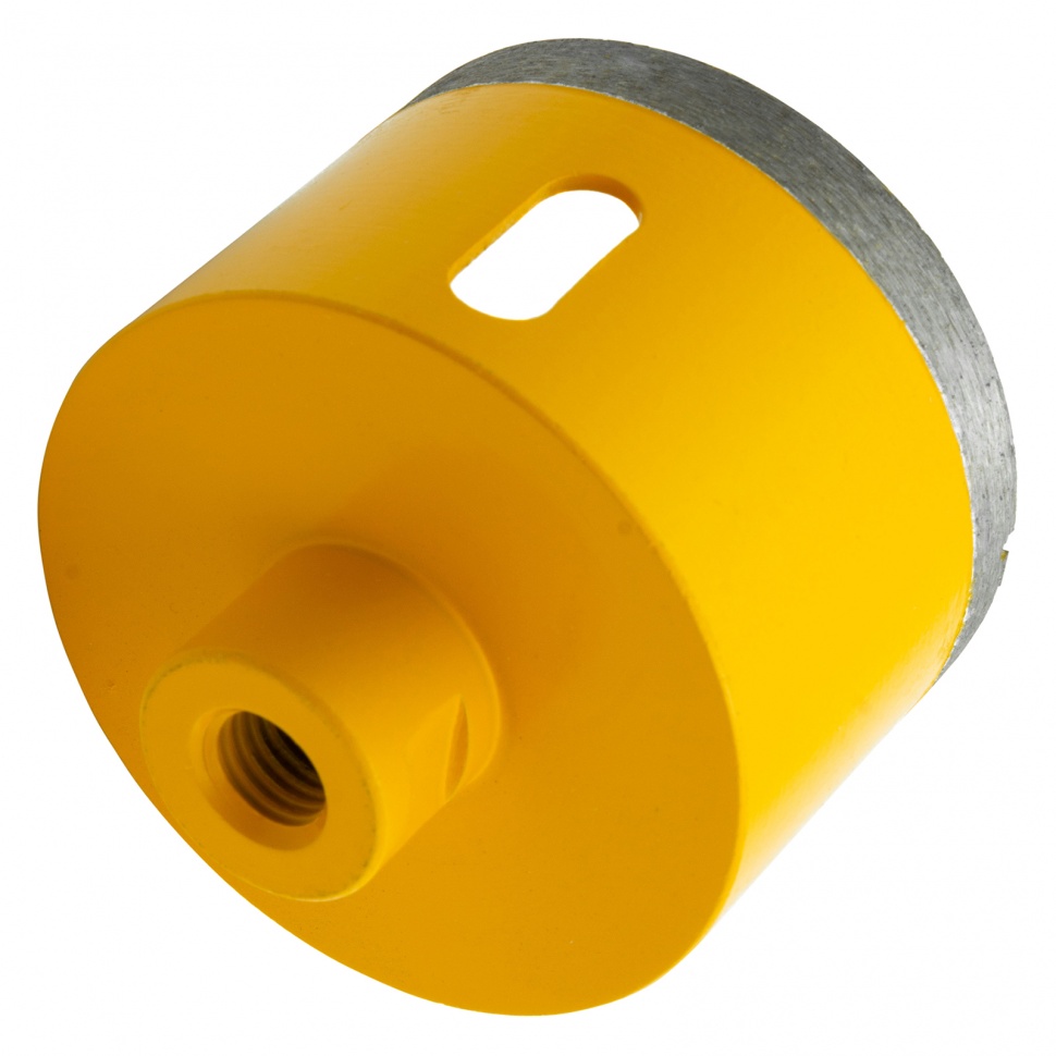 Сверло алмазное по керамограниту, 82 мм, мокрая резка, м14 denzel. Бренд: DENZEL Материал обработки: керамогранит Страна производства: Китай Максимальный диаметр, мм: 82 Тип упаковки: двойной блистер Вес (брутто), кг: 0.53 Сверло алмазное: 1 шт Алмазное сверло Denzel 72696 диаметром 82 мм, с резьбой М14, предназначено для «мокрого» сверления по керамограниту, мрамору, стеклу и керамической плитке. Позволяет получать ровные отверстия без сколов, используется для проведения ремонтных и отделочных работ. Сверло (коронку) устанавливают на вал углошлифовальной машины, благодаря чему скорость сверления увеличивается в несколько раз по сравнению с дрелью или шуруповертом. Применение водяного охлаждения повышает срок службы оснастки. Чтобы точно позиционировать сверло при сверлении дрелью, рекомендуется использовать кондуктор (арт. 72830). Преимущества Устойчивость к механическим нагрузкам — сверло из среднеуглеродистой стали 45 выдерживает длительное применение. Высокий ресурс — режущий слой изготовлен методом горячего спекания, что обеспечивает надежную фиксацию алмазов связкой. Повышенная режущая способность — концентрация алмазов в рабочем слое увеличена. Защита от коррозии — на поверхность сверла нанесено лакокрасочное покрытие. Дополнительные возможности — при помощи переходника (арт. 76290) сверло можно установить на дрель или шуруповерт.  развернуть описание ▼