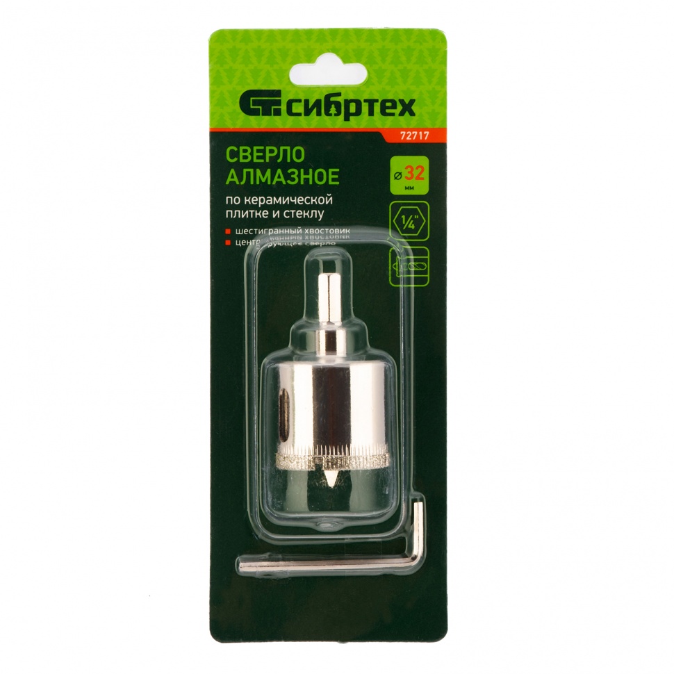Сверло по керамической плитке и стеклу, 32 х 55 мм, шестигранный хвостовик