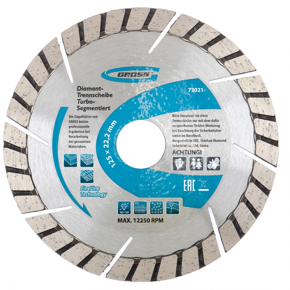 Диск алмазный, 125 х 22,2 мм, турбо-сегментный, сухая резка Gross