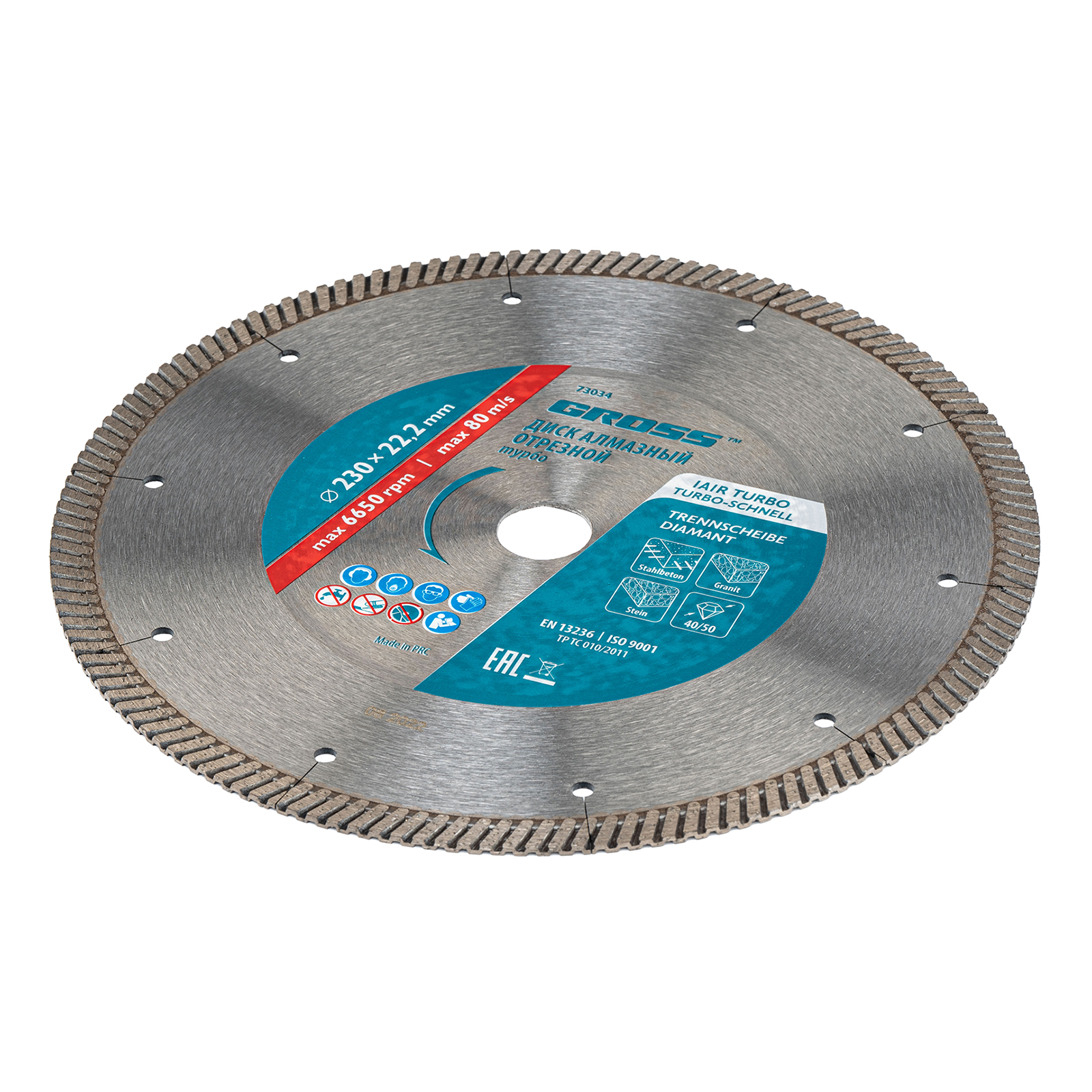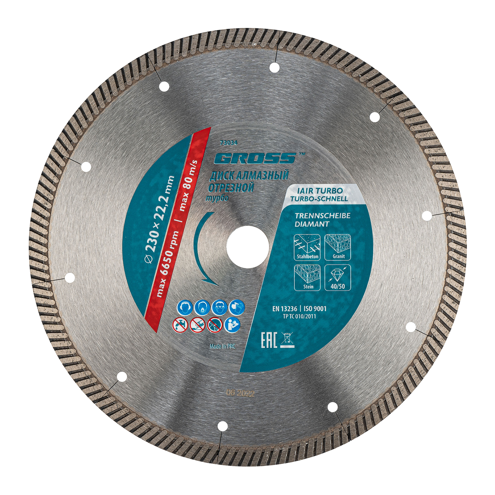 Диск алмазный, 230 х 22.2 мм, турбо с лазерной перфорацией, сухая резка Gross