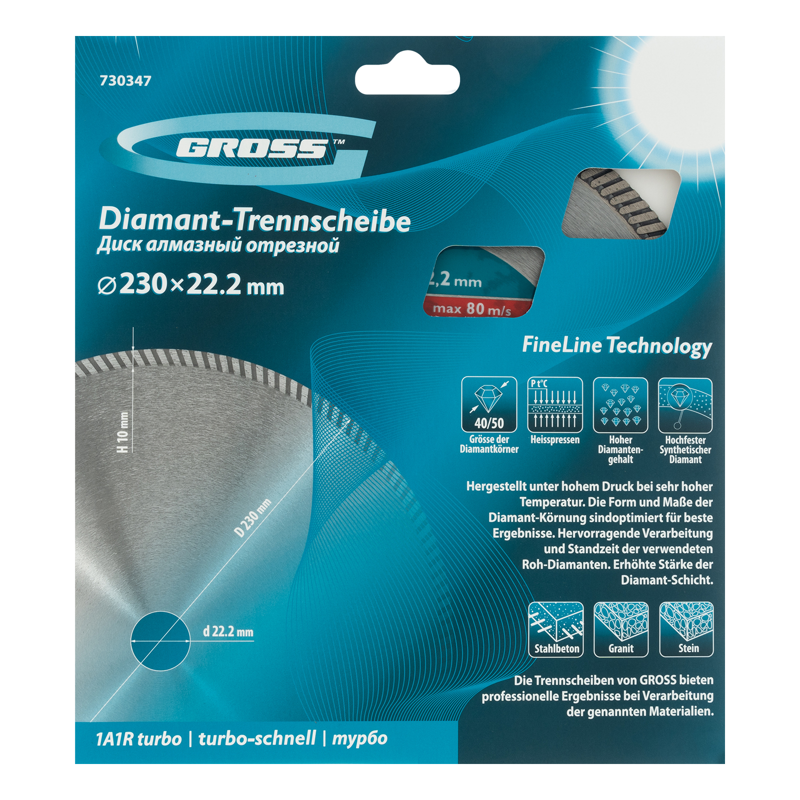 Диск алмазный, 230 х 22.2 мм, турбо, сухая резка Gross