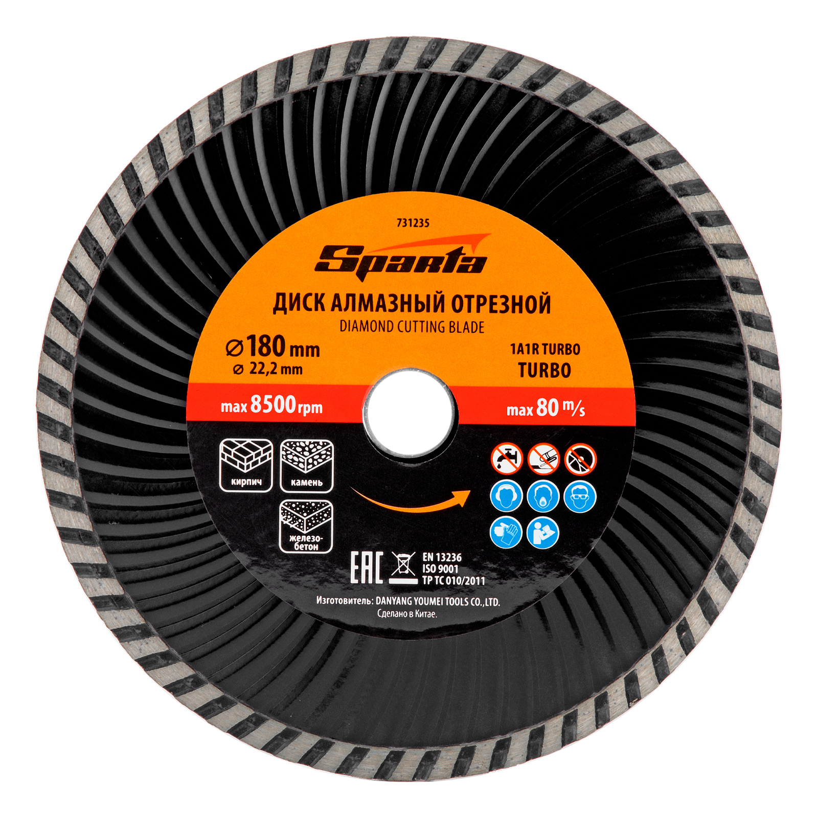 Диск алмазный, отрезной Turbo, 180 х 22.2 мм, сухая резка Sparta