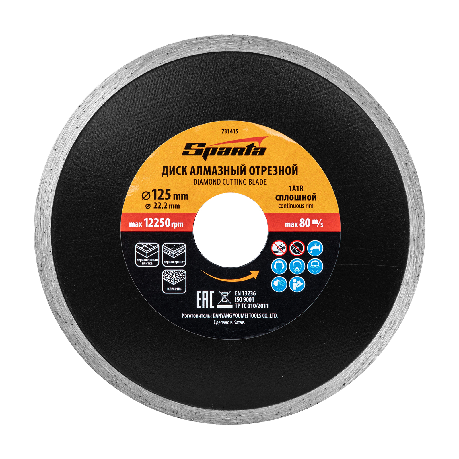 Диск алмазный, отрезной сплошной, 125 х 22.2 мм, мокрая резка Sparta