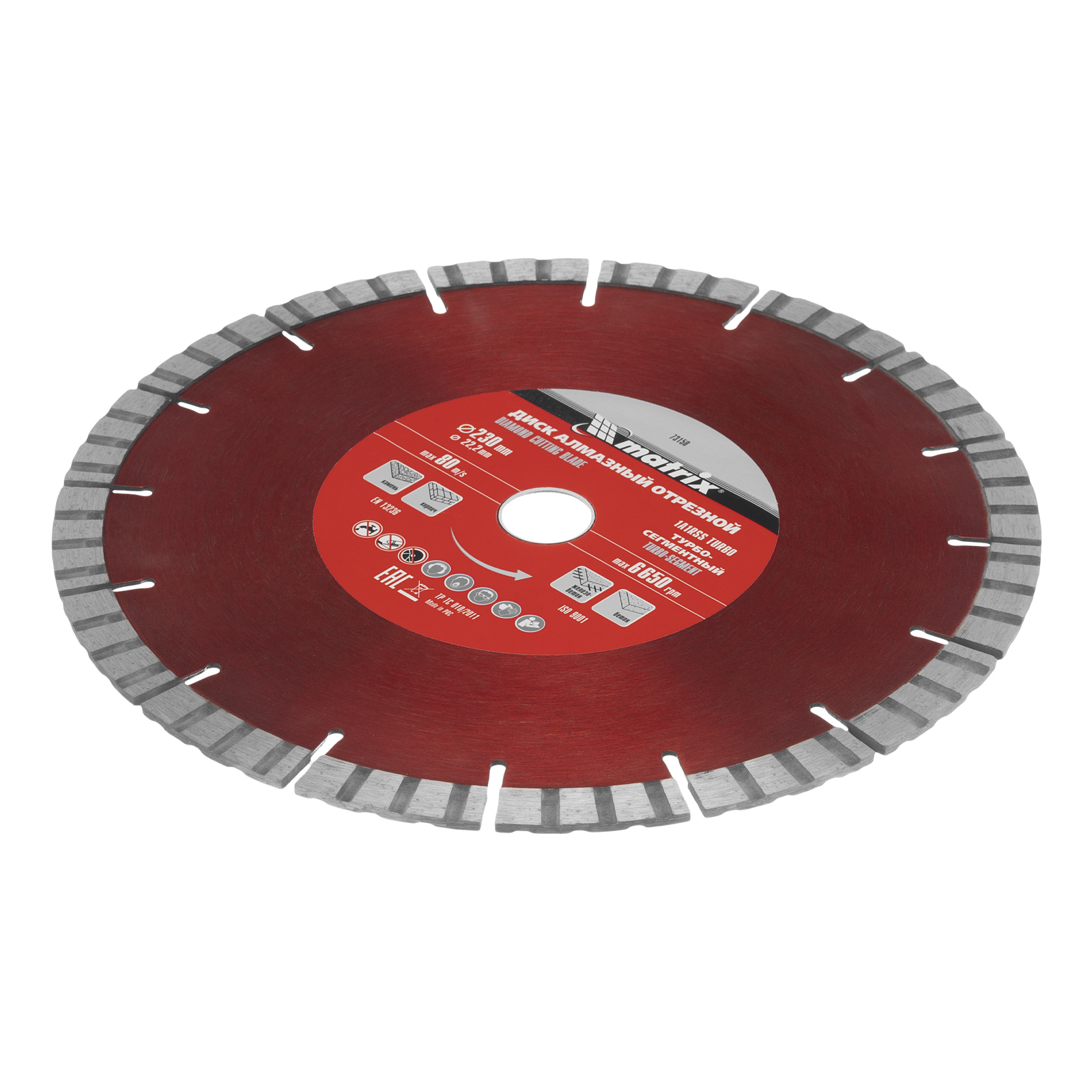 Диск алмазный, отрезной турбо-сегментный, 230 х 22.2 мм, сухая резка Matrix Professional
