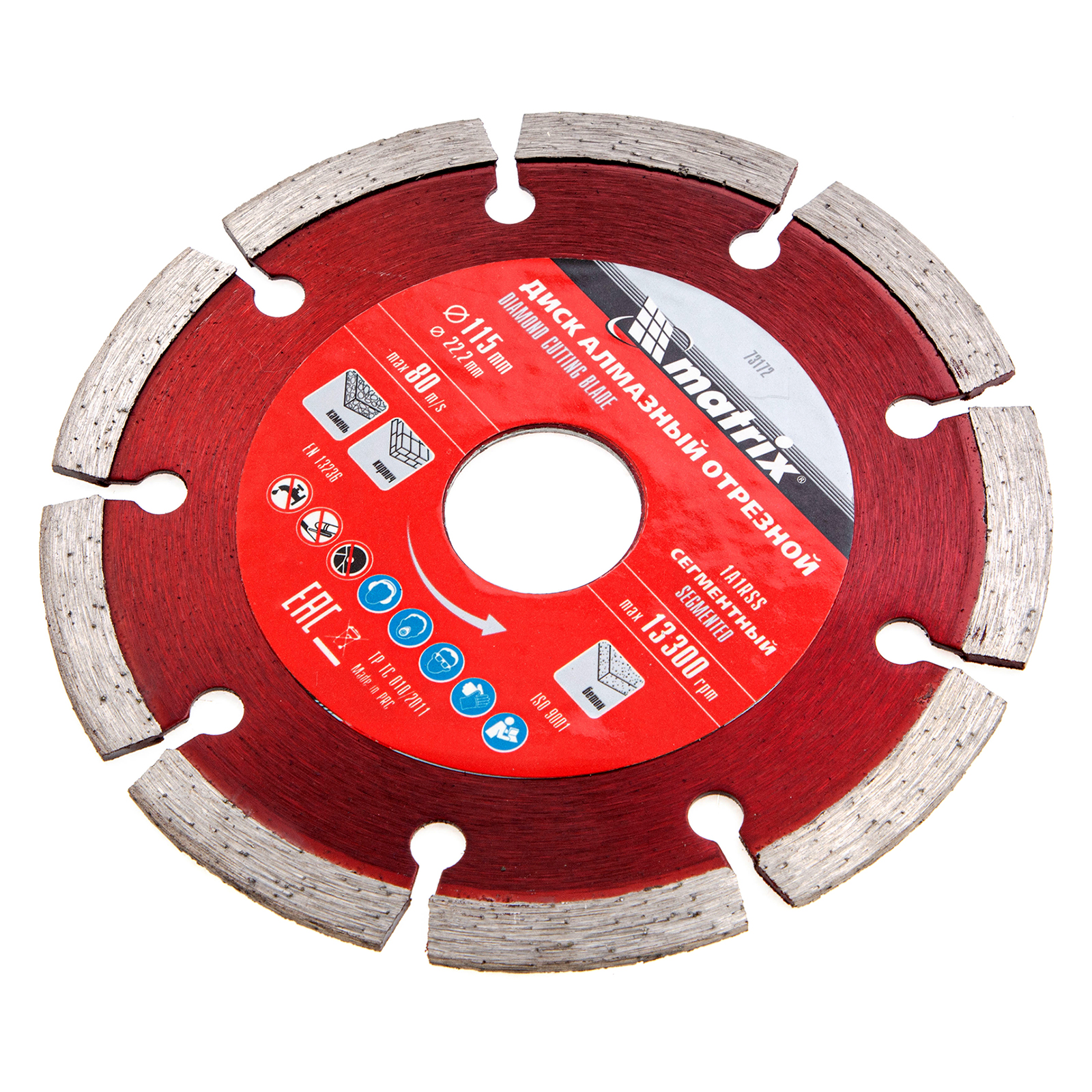 Диск алмазный, отрезной сегментный, 115 х 22.2 мм, сухая резка Matrix Professional